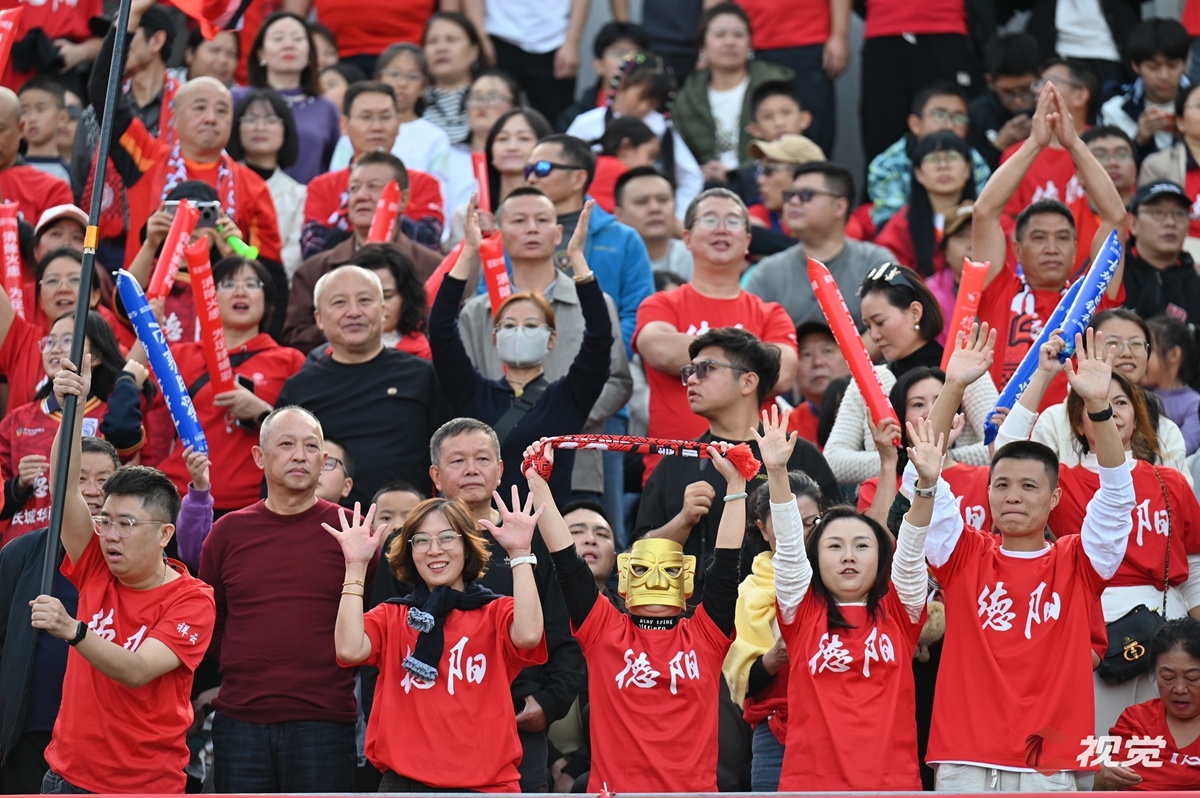 11月9日下午,绵阳九洲长虹队的球迷在德阳市体育公园体育场为球队倾情助威。