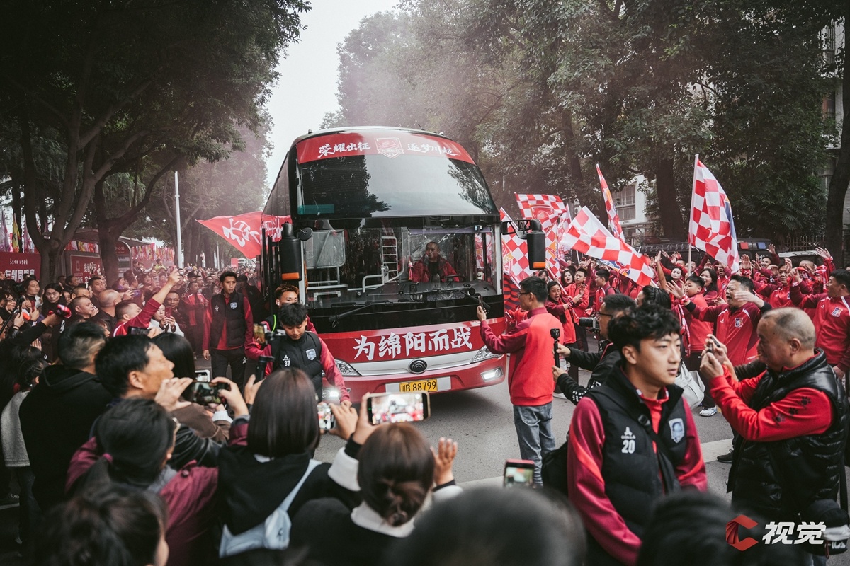 11月1日,绵阳九洲长虹队的球迷在三台县体育场外迎接球队。
