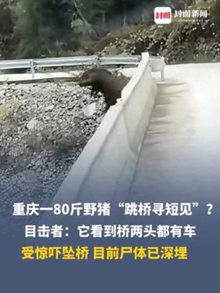 C视频丨桥两头都有车,野猪慌不择路一跃而起跳桥,目击者:当场摔死,已深埋处理