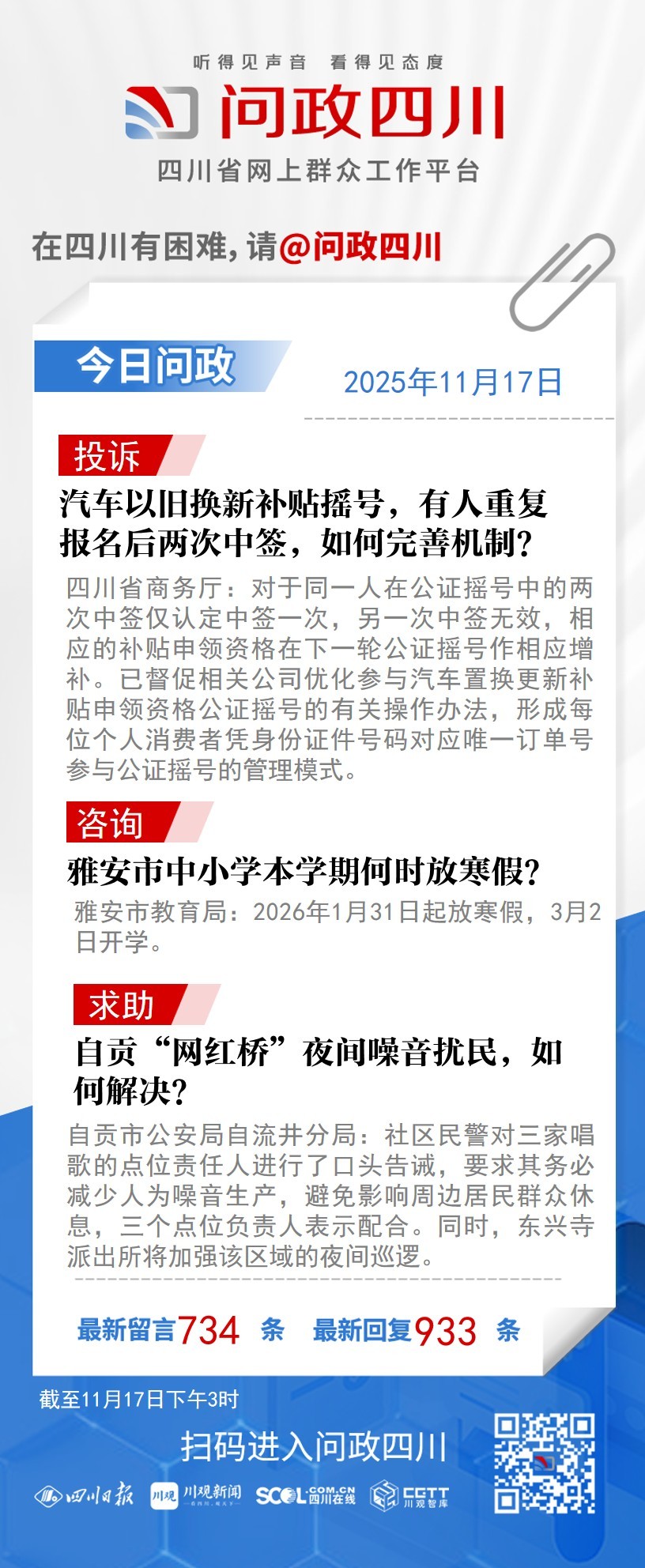 问政四川网友提问:2025 年 11 月 14 日四川省汽车补贴第二次公证摇号结果中,同一自然人用两个不同手机号注册参与摇号且均中签,疑似违规占用补贴名额,会否浪费财政资源、损害其他消费者权益?恳请调查处理。