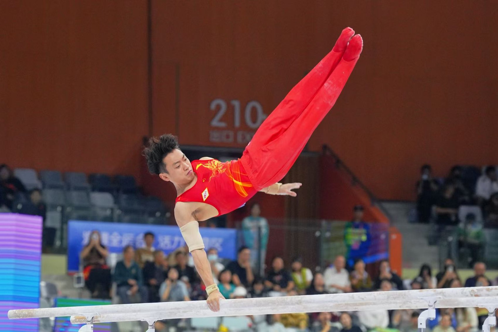 四川队邹敬园连续三届全运会拿到了体操双杠项目的金牌,“双杠王”实至名归。