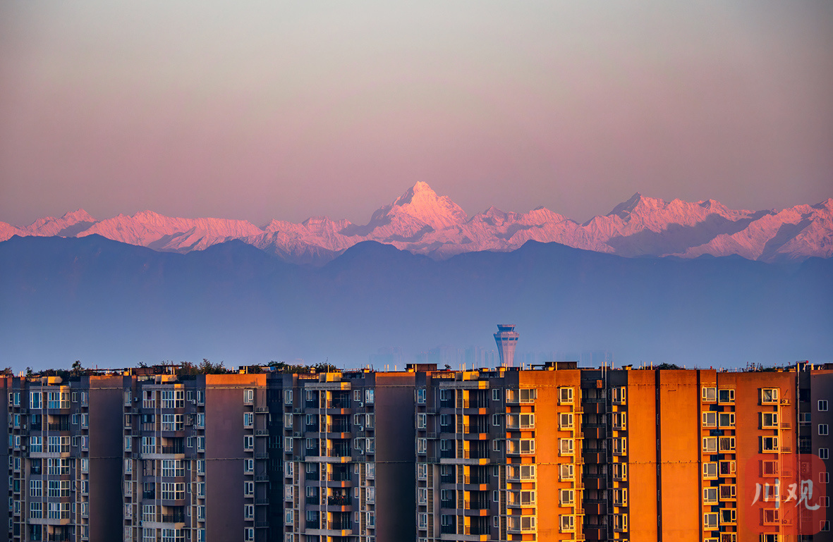 2025年3月的一天,川西雪山群清晰地展现在成都市民眼前。C视觉摄影师 刘耀飞