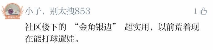 也有网友说,“社区楼下的‘金角银边’超实用,以前荒着现在能打球遛娃。”