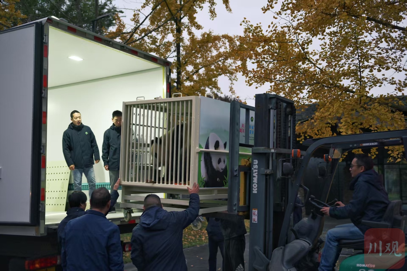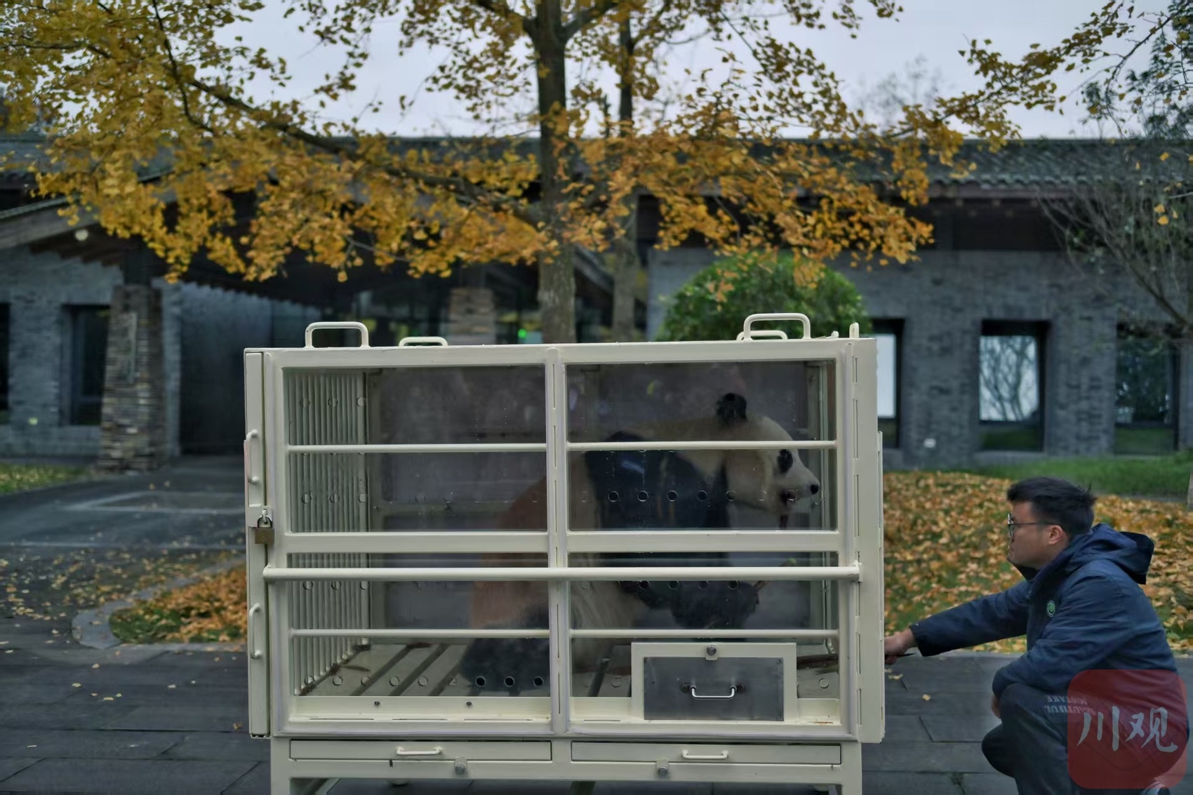 11月18日16时许,大熊猫“辰星”“晓月”在成都双流国际机场乘坐专机前往马来西亚国家动物园,开启新一轮为期十年的中马大熊猫保护合作研究。