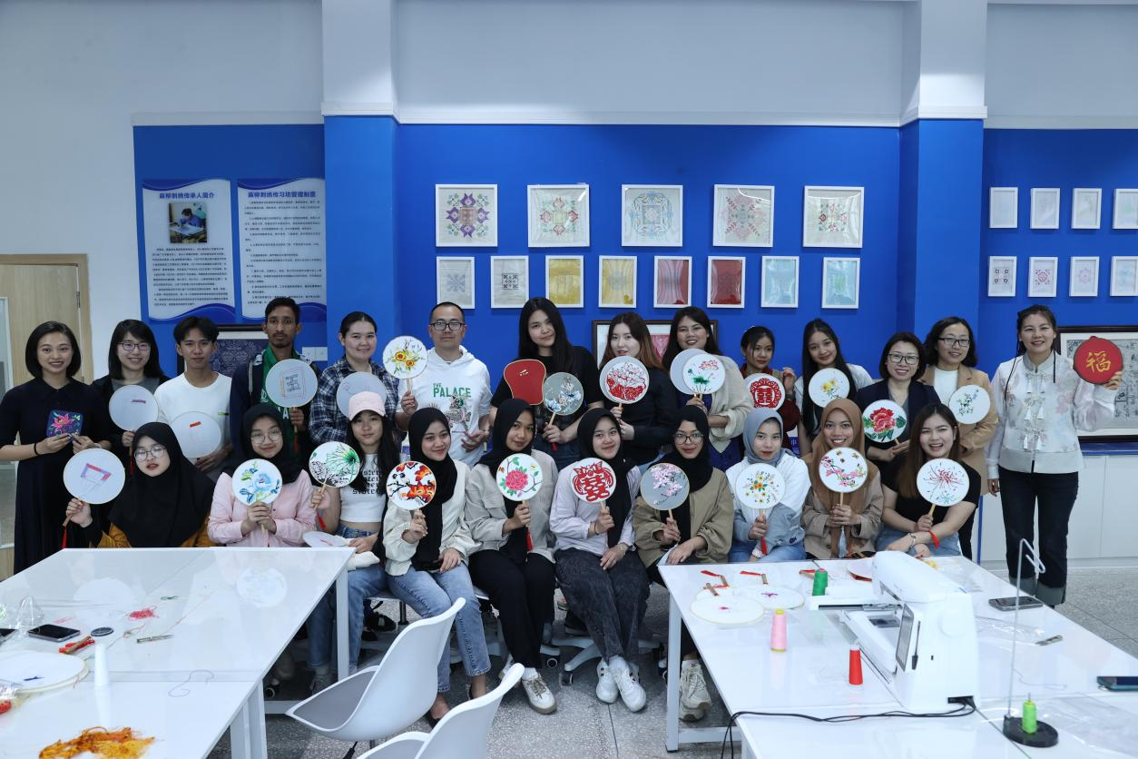 四川信息职业技术学院留学生在川北幼儿师范高等专科学校非遗传习坊进行文化交流活动。