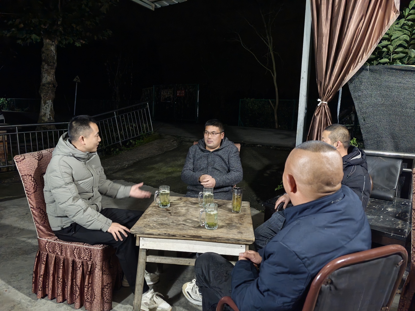 战旗村党委副书记彭祖彬(左一)在“暖心茶馆”里,帮助协调解决村民问题。受访者供图
