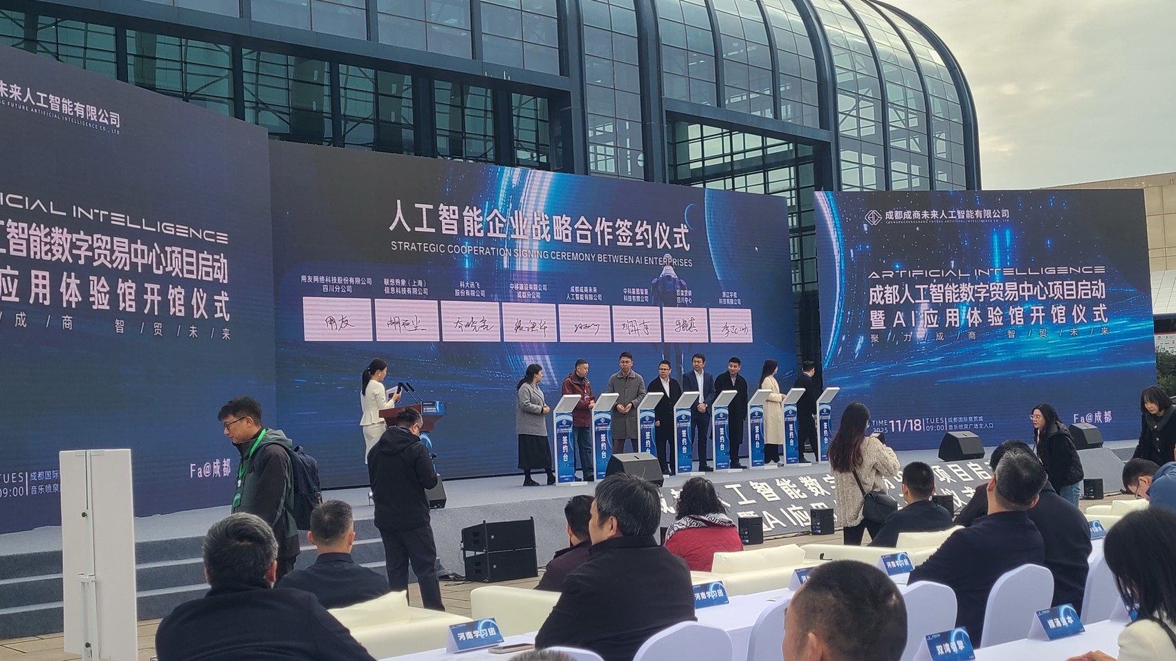 据成都成商未来人工智能公司董事长孙正川介绍,成都人工智能数字贸易中心面积约40万平方米,是由成都国际商贸城筹备两年打造的,意在帮助企业解决数字转型技术不足、服务缺失,以及数字贸易服务体系存在短板等难题。中心将融合人工智能与数字贸易,推动贸易模式从“线下为主”向“智能线上+体验线下”创新升级。对企业而言,中心可提供技术支撑、资源对接、人才培养等全链条服务,预计可降低企业数字转型成本30%以上。