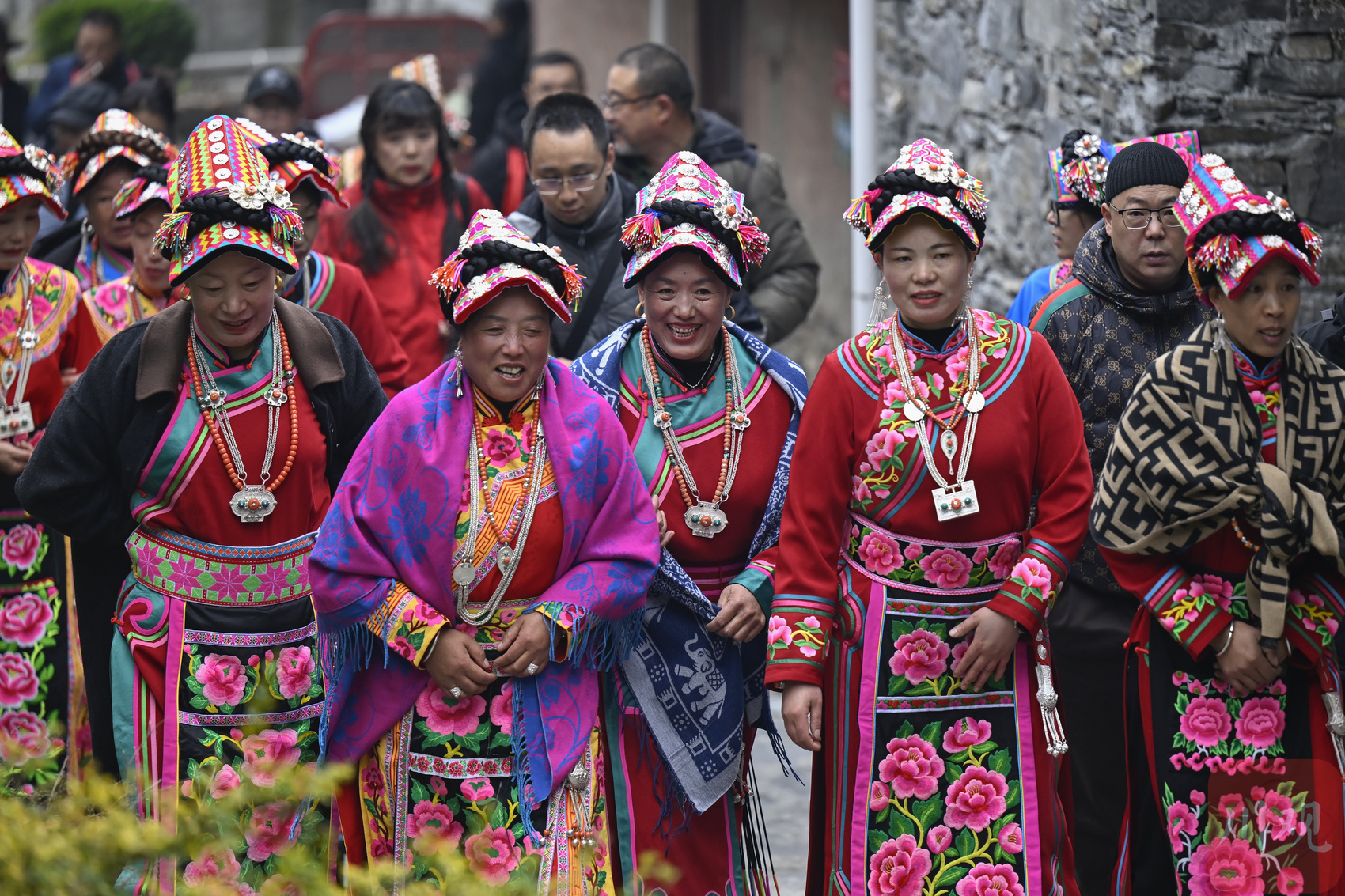 11月18日上午,茂县赤不苏镇举行“日麦喜”民俗文化活动,盛装出席的羌族女性。