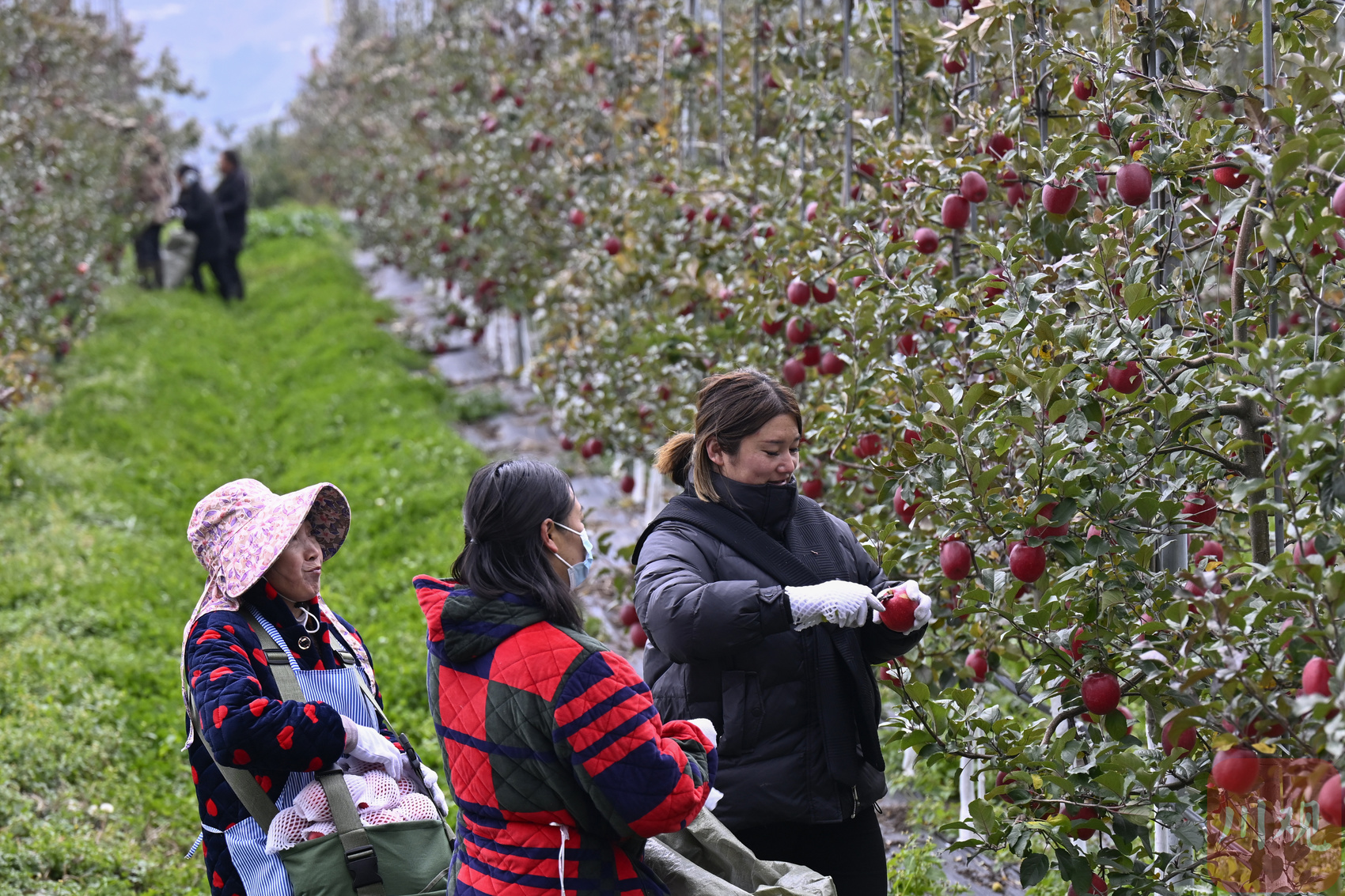 11月18日下午,茂县凤仪镇坪头村的苹果园里,果农正在采摘苹果。