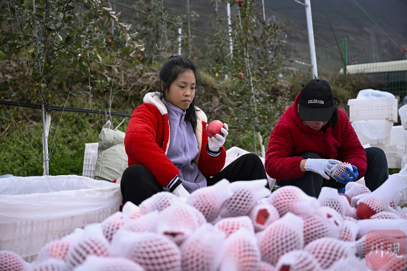 11月18日下午,茂县凤仪镇坪头村的苹果园里,果农正在对采摘的苹果进行包装。