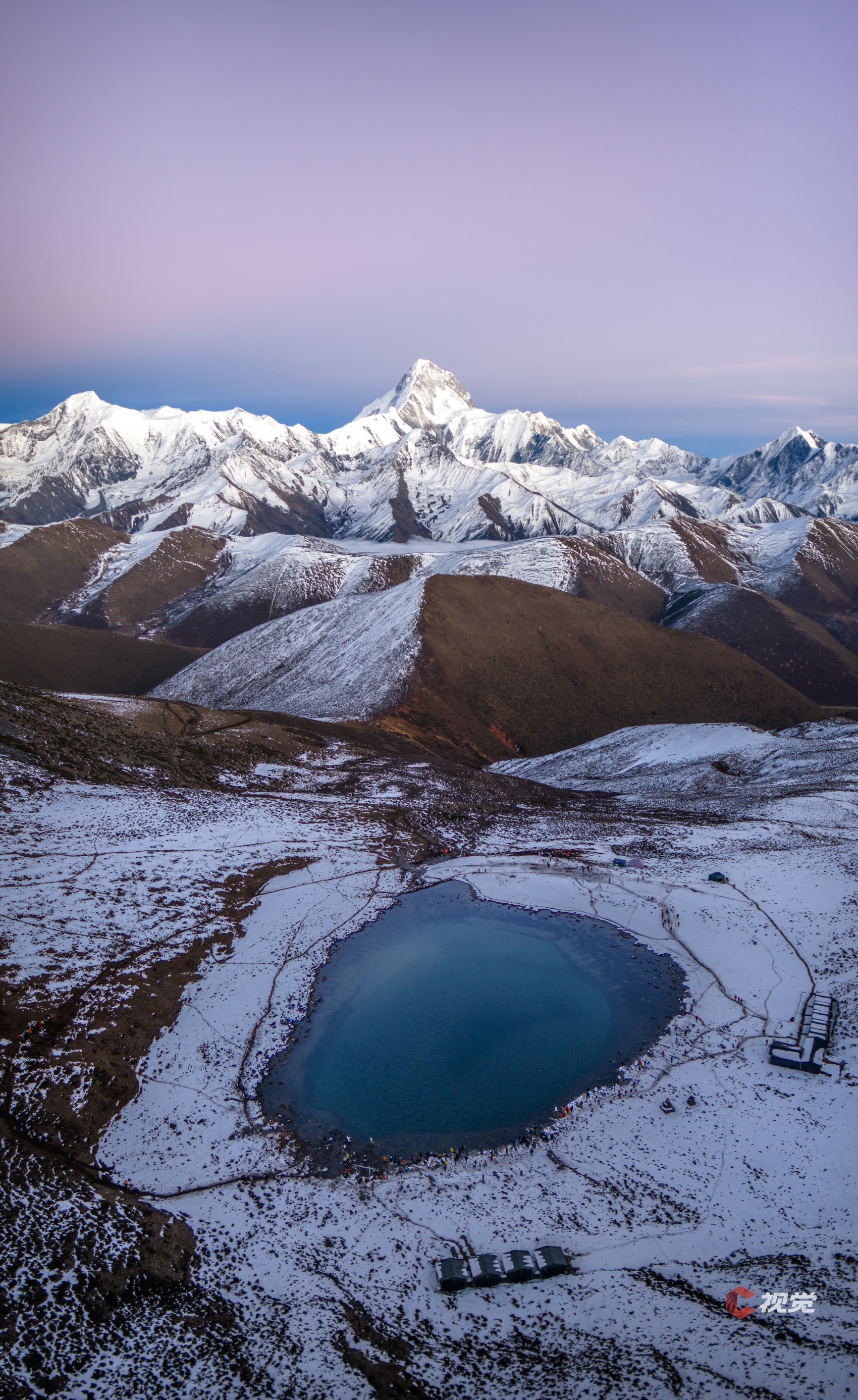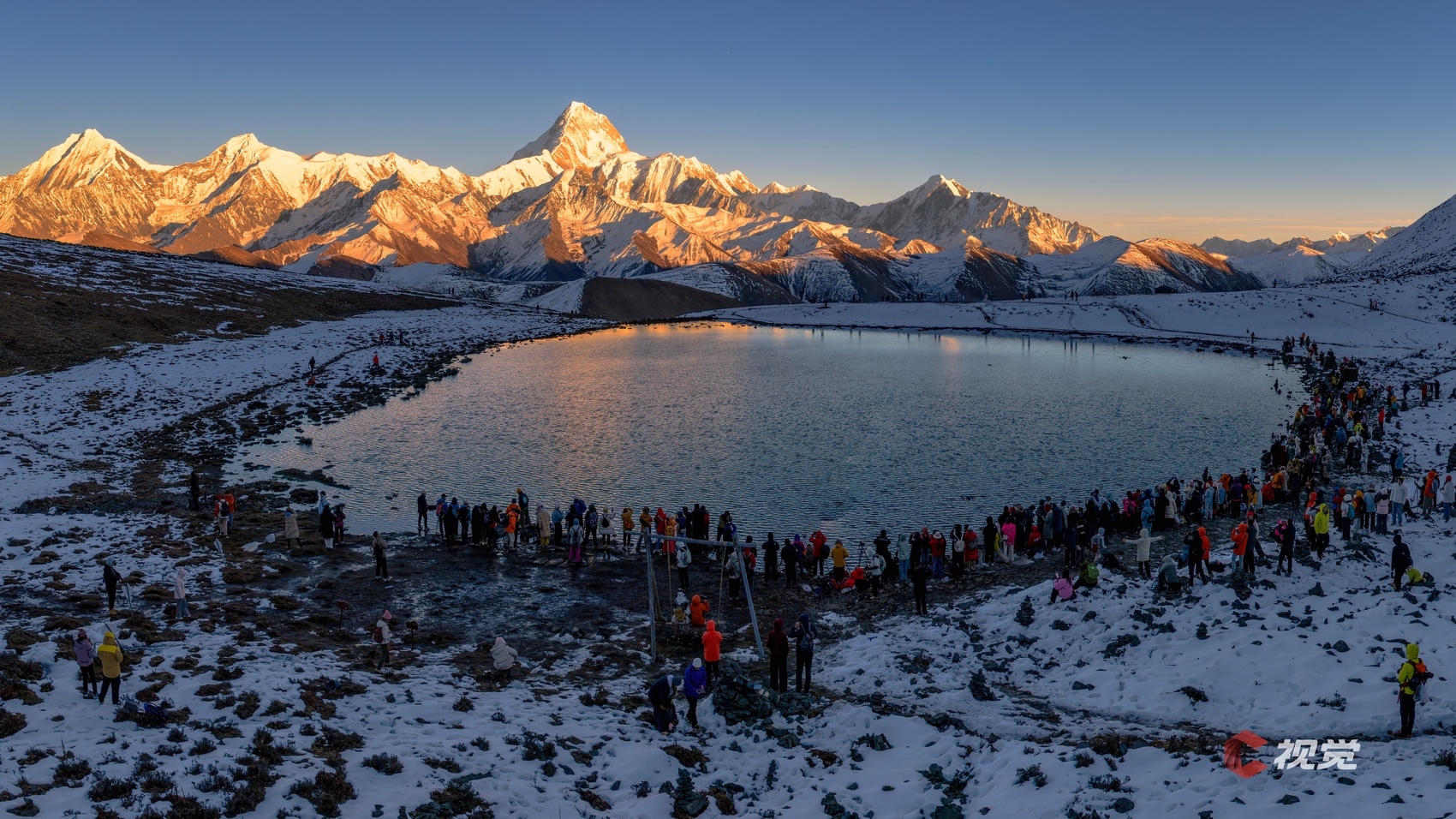 在贡嘎最佳观山点位之一冷嘎措,众多游客在等待、拍摄日照金山之景。C视觉签约摄影师 顾志平