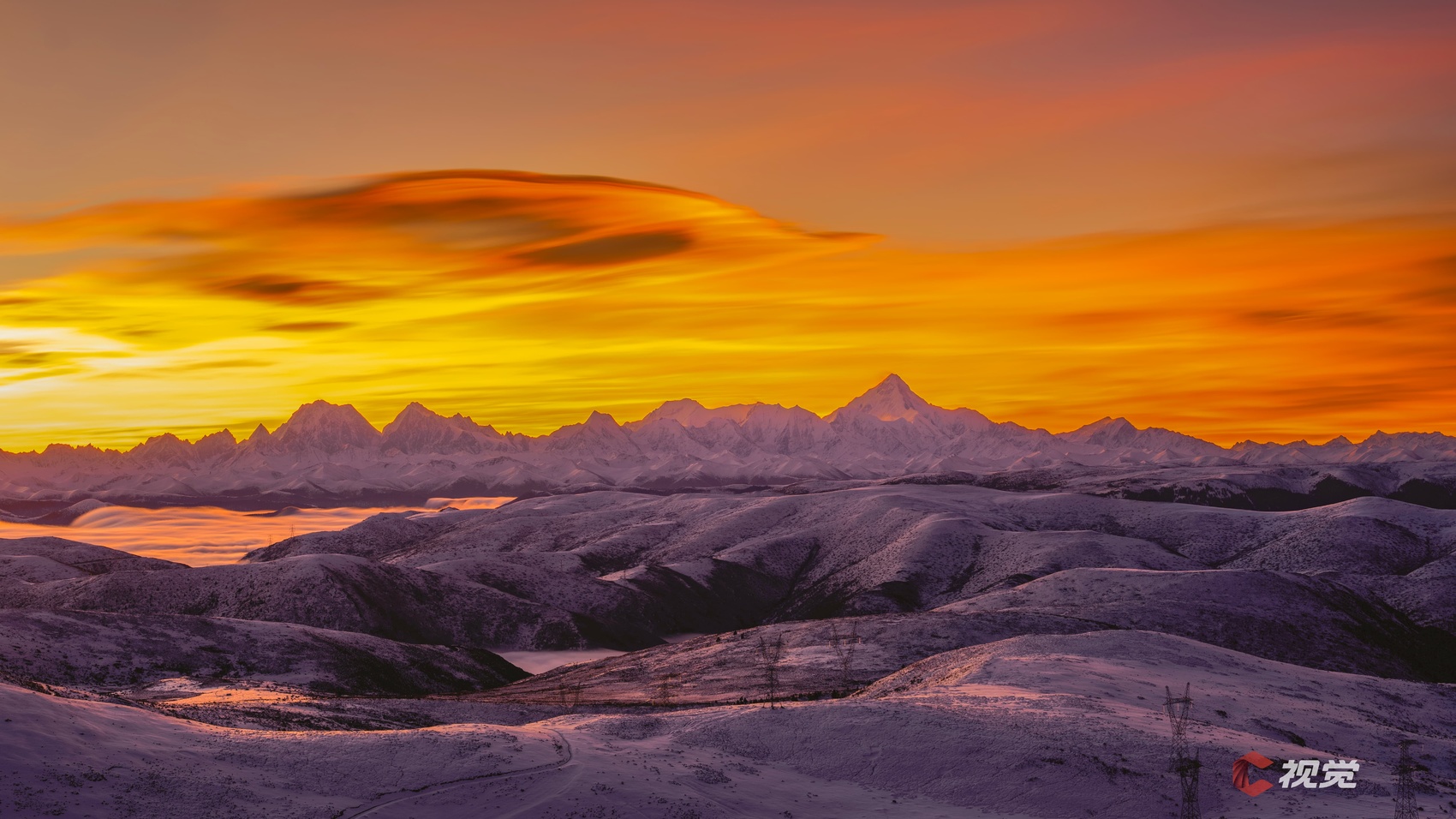 破晓时分,在甘孜州康定市高尔寺山,满天红霞映照贡嘎雪山,如同人间仙境。C视觉签约摄影师 田相和