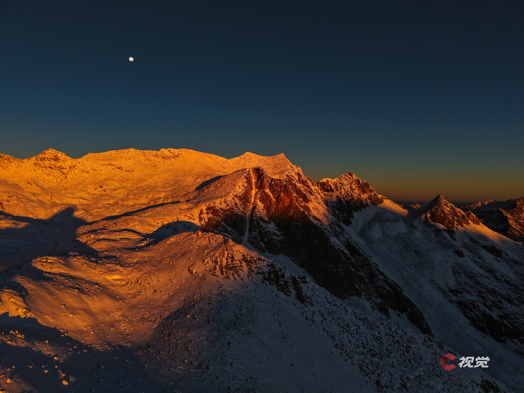 阿坝州黑水县达古冰川,一轮圆月伴随日照金山,美不胜收。C视觉签约摄影师 田弟丽