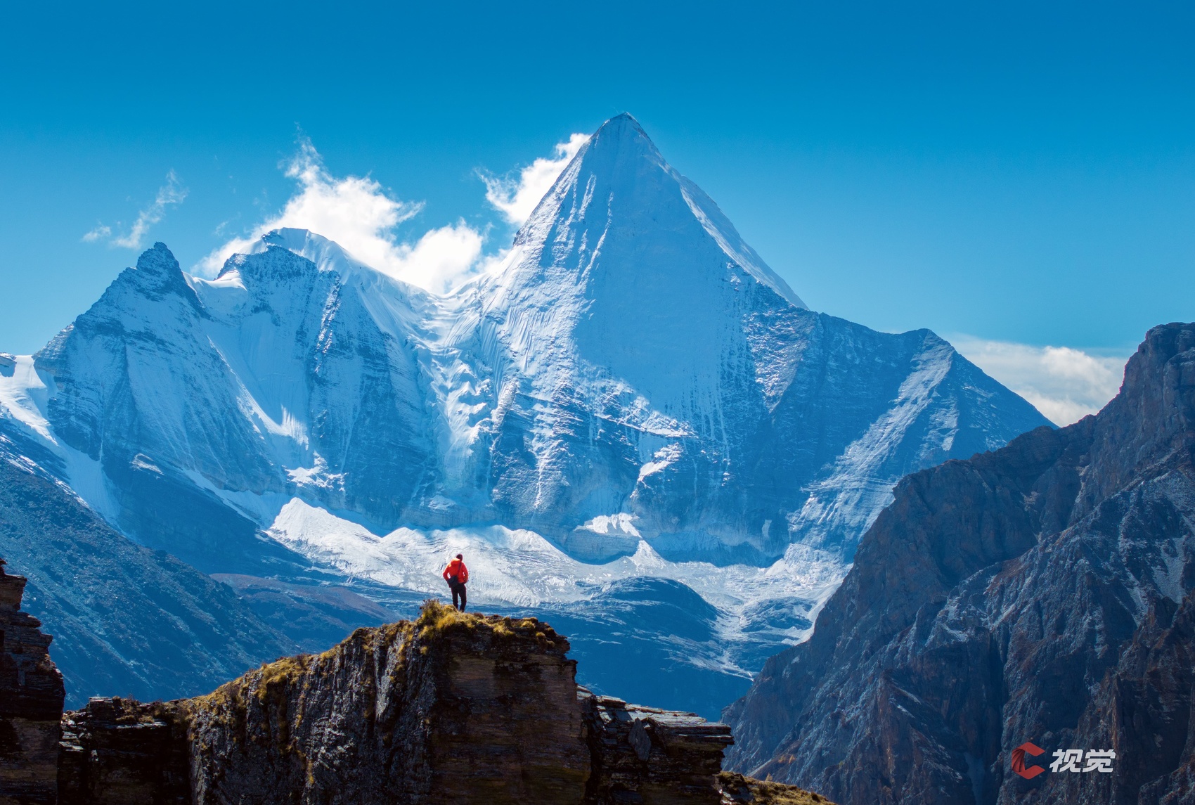 在甘孜州稻城亚丁,登高仰望三神山之一央迈勇雪山。C视觉签约摄影师 王治