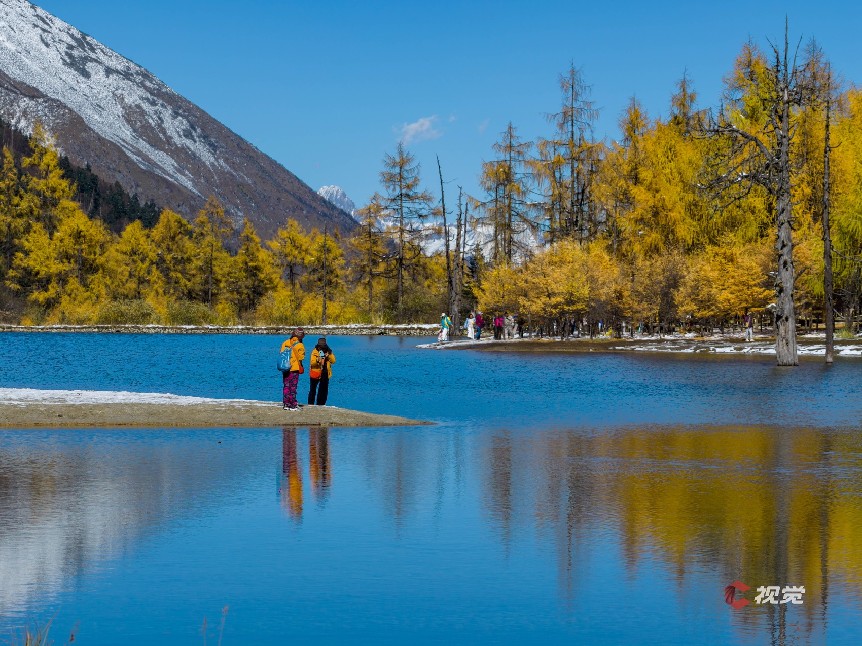 大雪过后的毕棚沟,游客依旧络绎不绝,穿行在雪山下的彩林之中。C视觉签约摄影师 朱志宏