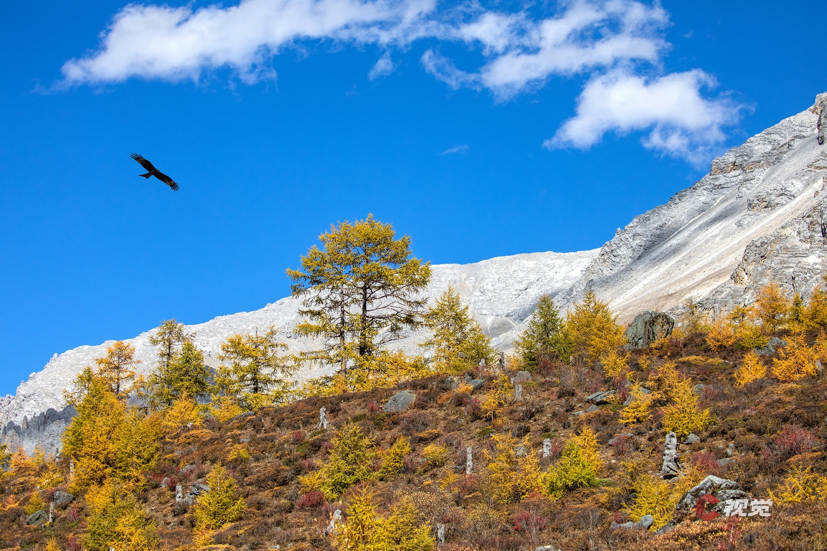 阿坝州黑水县奶子沟,雪山下的羊茸哈德彩林尽染。C视觉签约摄影师 杨徐晓