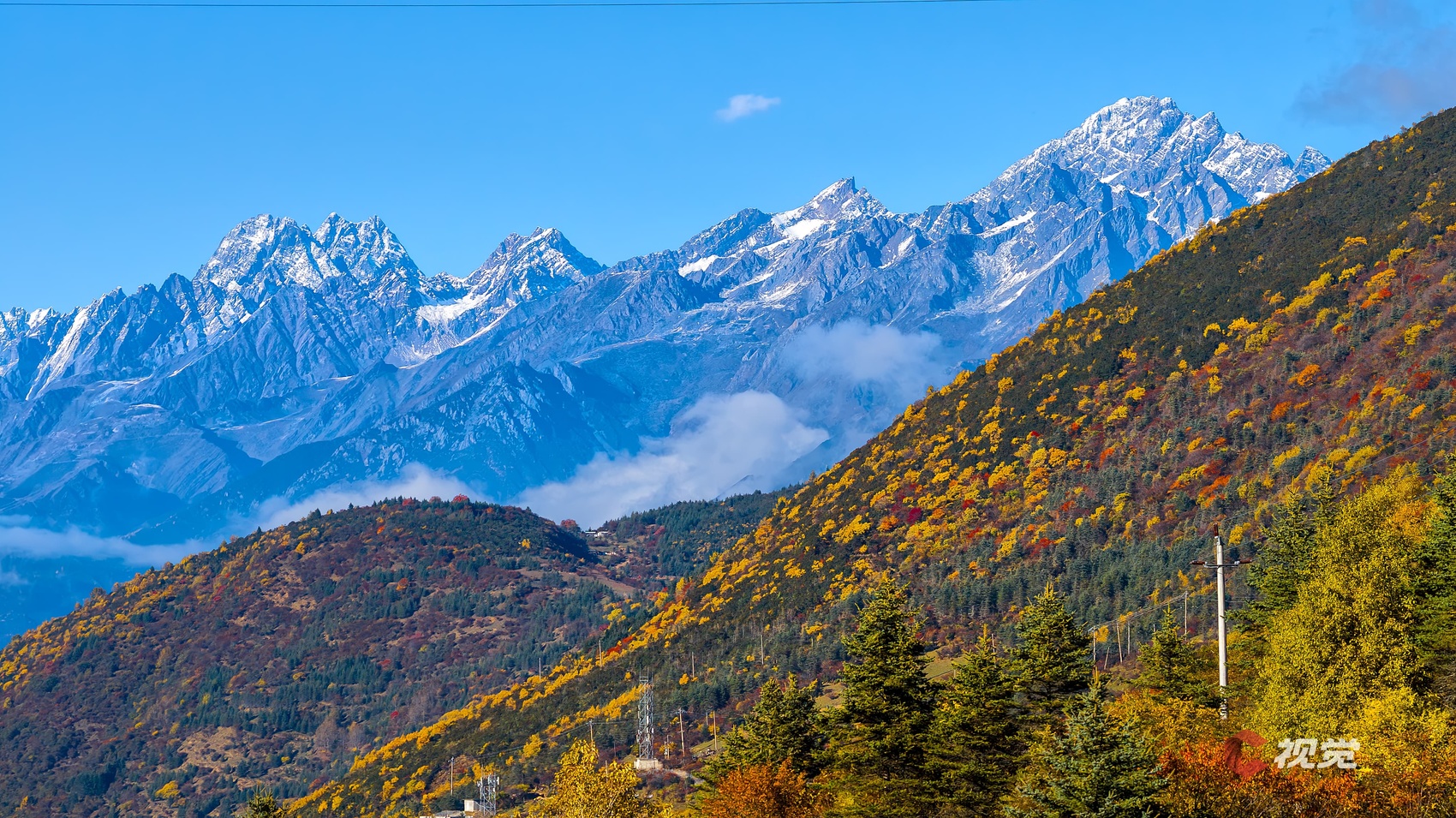 在阿坝州小金县结斯乡,彩林如画,雪山巍峨,构成了一幅初冬画卷。C视觉签约摄影师 马再鸣