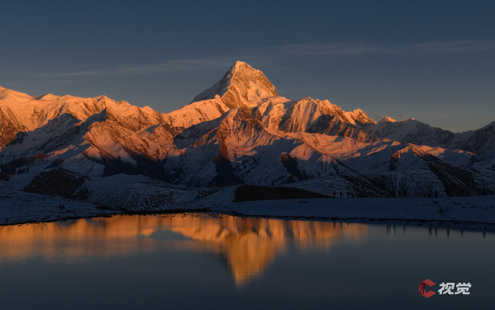 甘孜州冷噶措倒映着“蜀山之王”贡嘎雪山日照金山美景,美轮美奂。C视觉签约摄影师 余昊昃