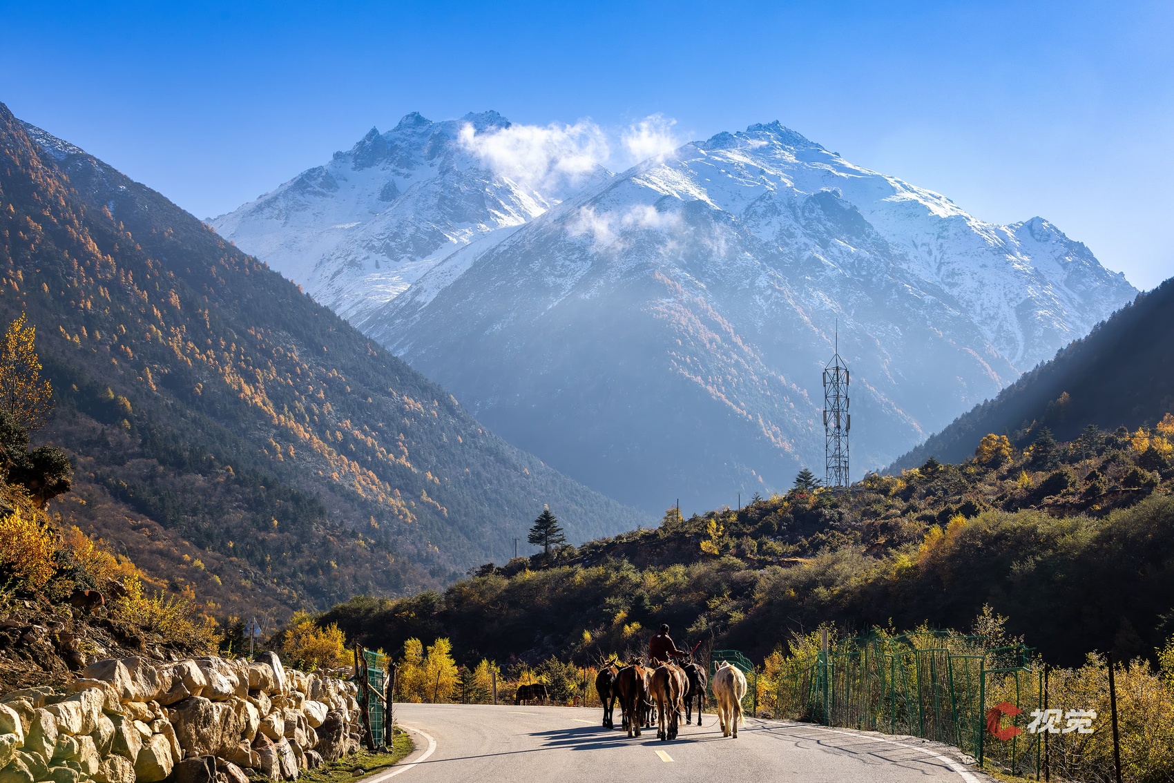 甘孜州康定市去往雅家埂的路上,一名村民正赶马去朗格曼因雪山接待游客。C视觉签约摄影师 沈军