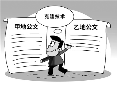 近年来,公文抄袭事件时有所见,前不久媒体就曝光了两起:山西某地的一篇领导调研稿,竟和当地某单位的另一篇领导调研稿高度雷同;广西某县的森林防火规划中,关于水文数据的描述竟与500公里外湖南某县的文本几乎一模一样,甚至照搬了外地的乡镇名称……