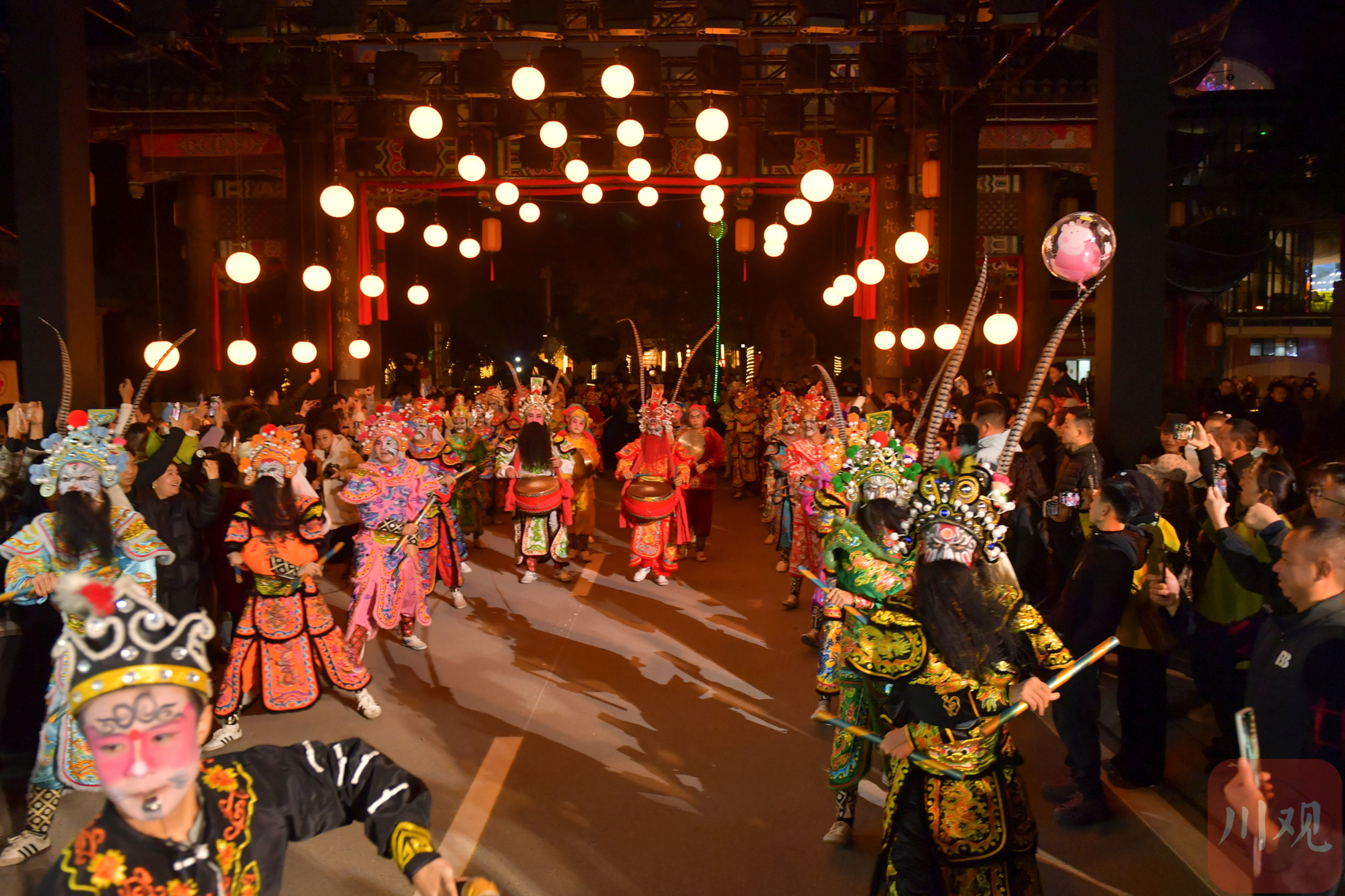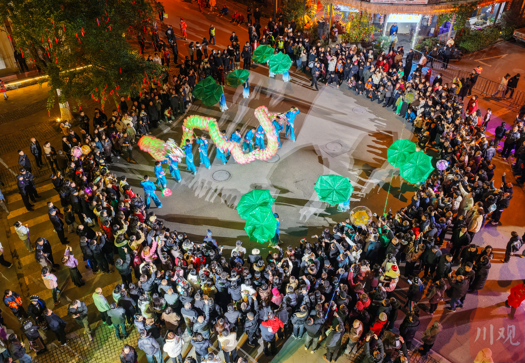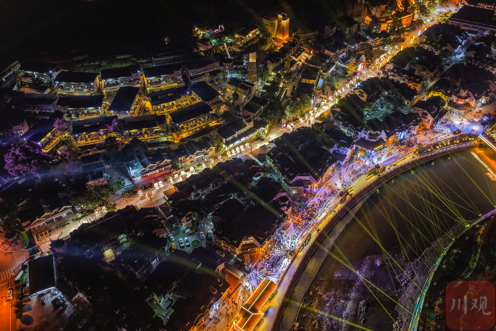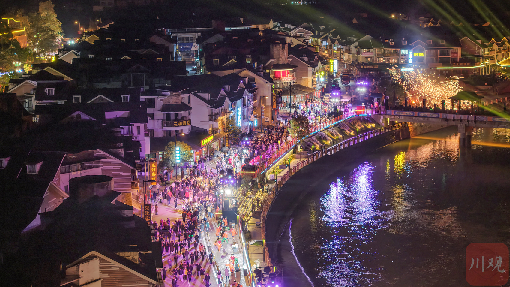 2025年11月18日,在四川省阿坝州汶川县映秀镇街头,当地群众纷纷走出观看表演和夜景庆祝羌历新年的到来,现场热闹非凡。