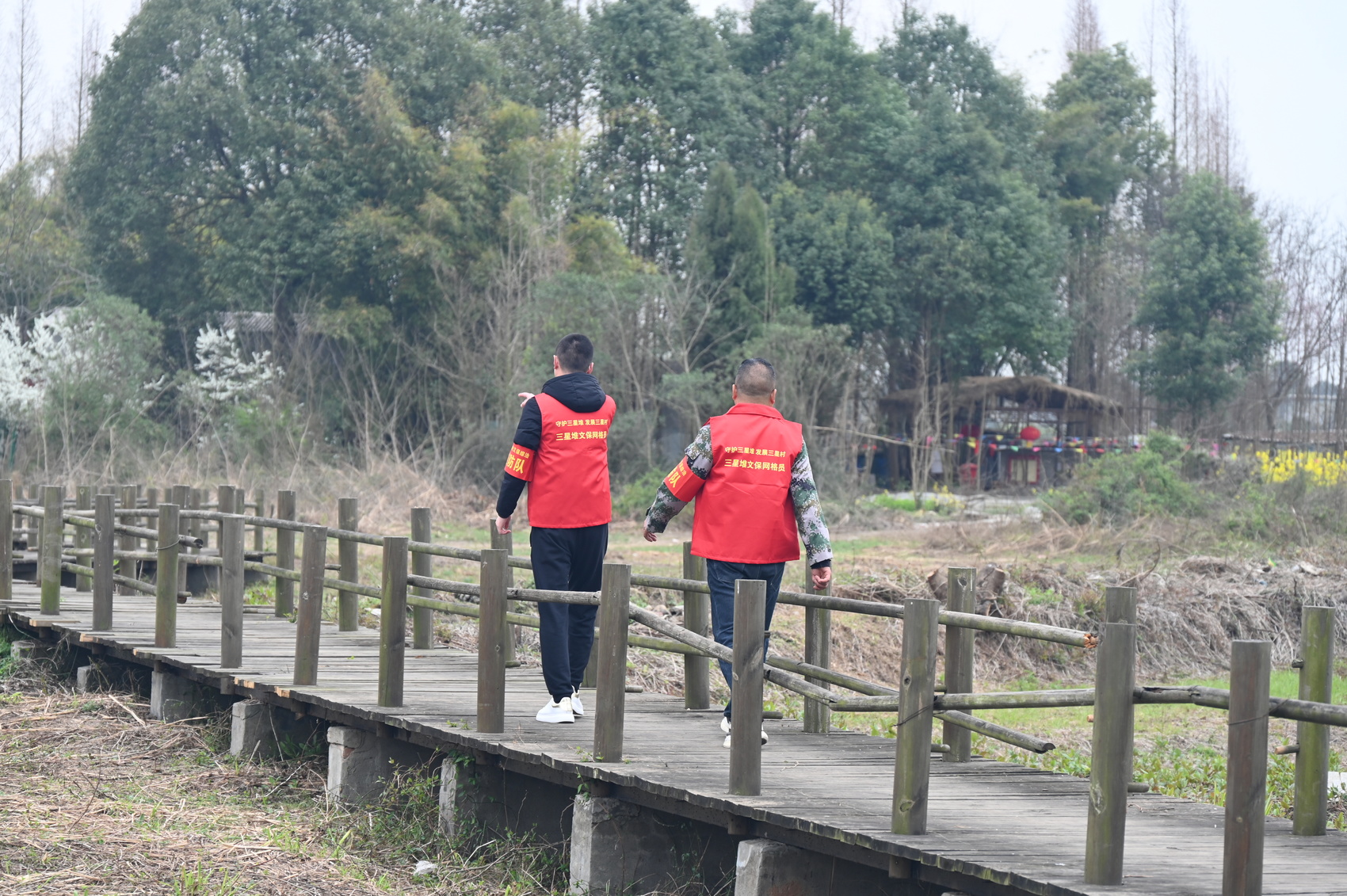 三星堆遗址是三星村灿烂的文化遗产。为落实好三星堆遗址保护任务,2021年,三星村成立三星村文保综治巡防队。队伍将三星村划分为16个文保网格,实施白班与夜班两班倒机制,队员每天都要把3.6平方公里的遗址区走上一遍,查看遗址区有无破坏迹象、文物保护用地是否发生侵占、环境卫生是否干净、劝阻不文明行为等。