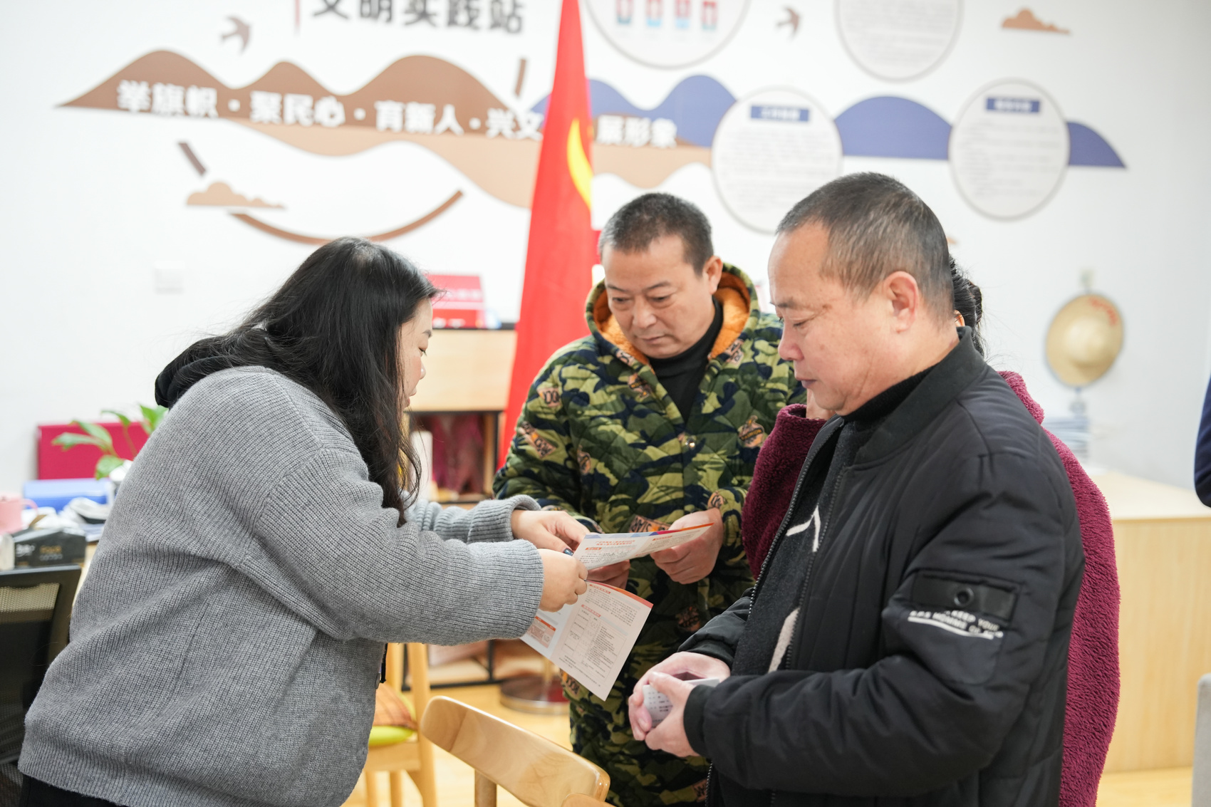 三星村新时代文明实践站工作人员向村民宣传文物保护政策。袁矛 摄