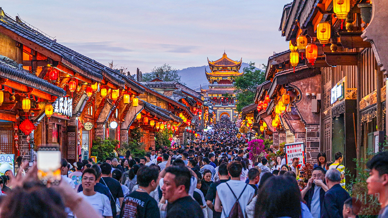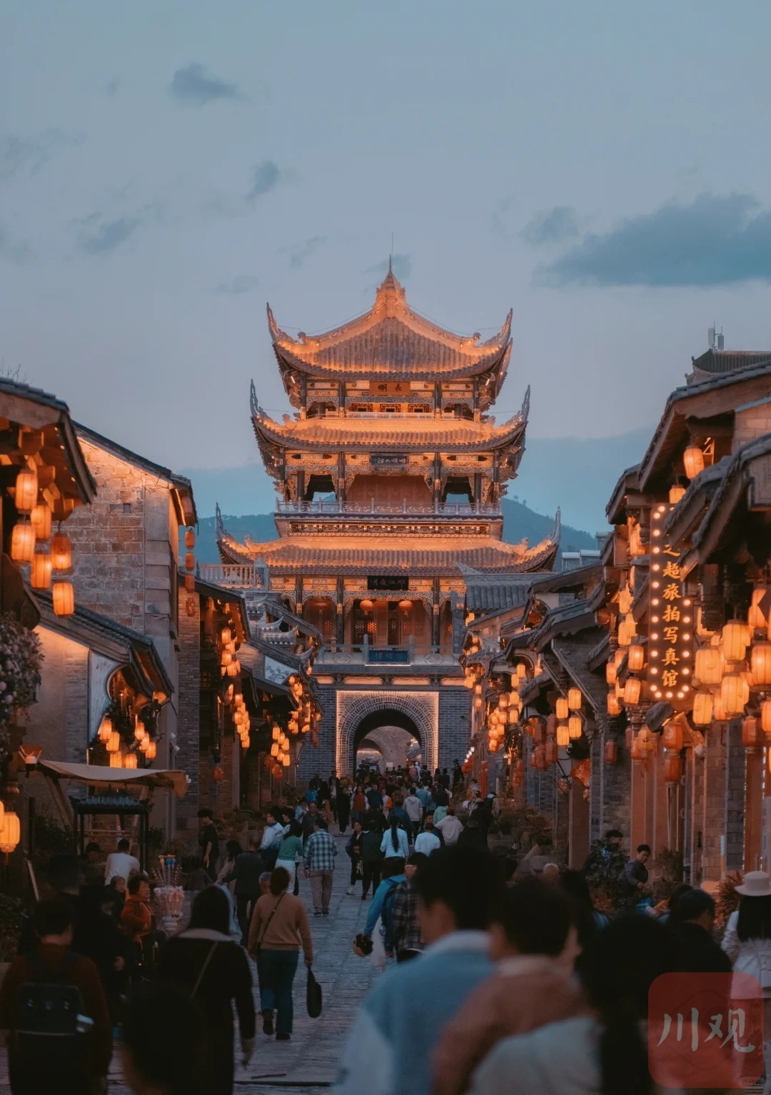 旅拍消费在古城也十分火爆。众多旅拍店铺主打彝族服饰旅拍,游客们换上精美的彝绣服装,在雕花门楼前定格美丽瞬间,留下独一无二的旅行记忆。蜀绣博物馆等文化场所,则为游客提供了深入了解传统文化的窗口。