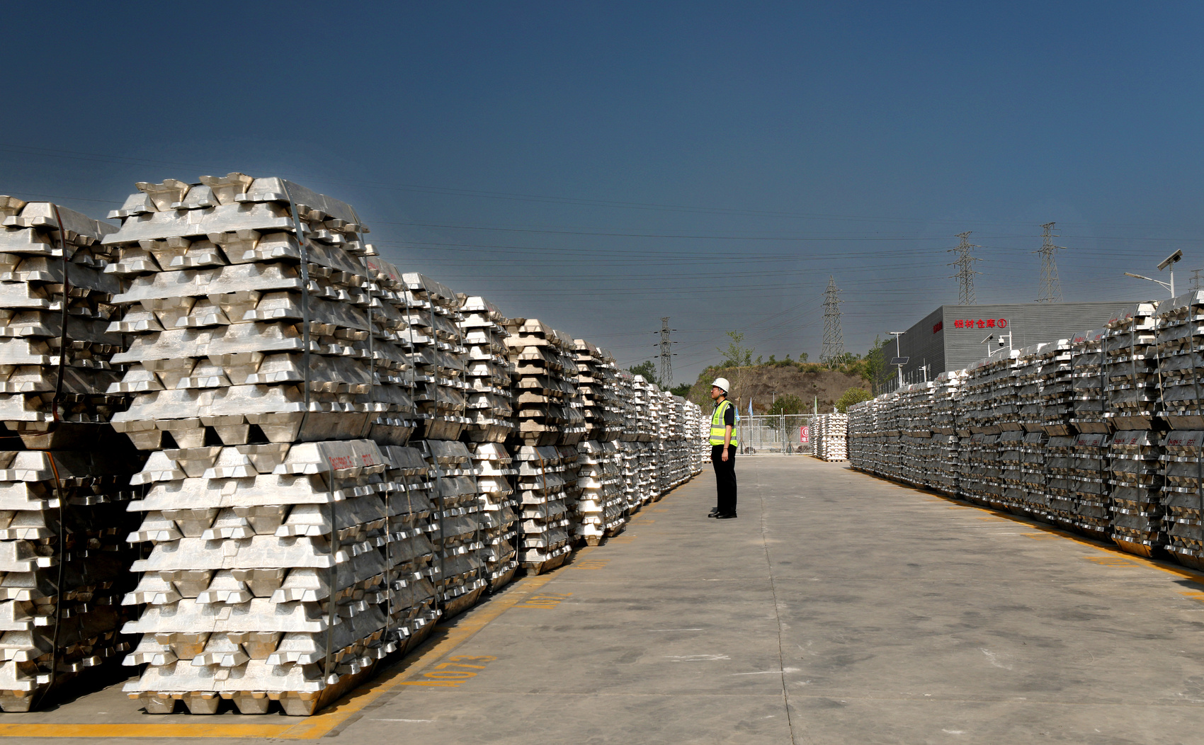 中国西部(广元)铝锭贸易中心的铝锭堆场。高志农 摄