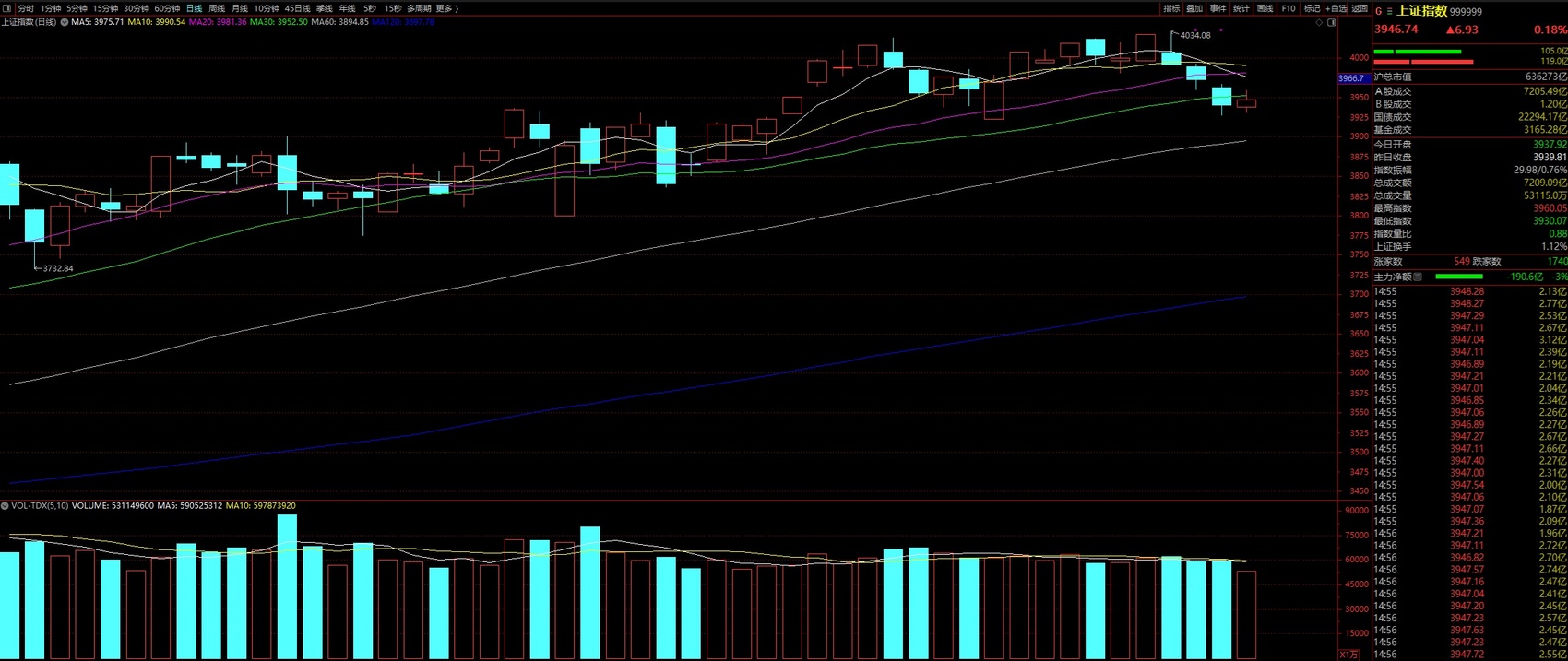 11月19日,上证指数低开高开,盘中指数在3930点至3960点之间持续震荡,整体波动较前几日有所减小。最终上证指数顶住压力收红,但未能成功回到30日均线上方。