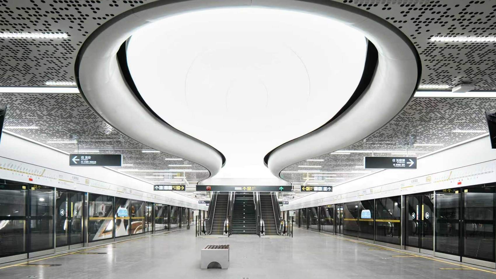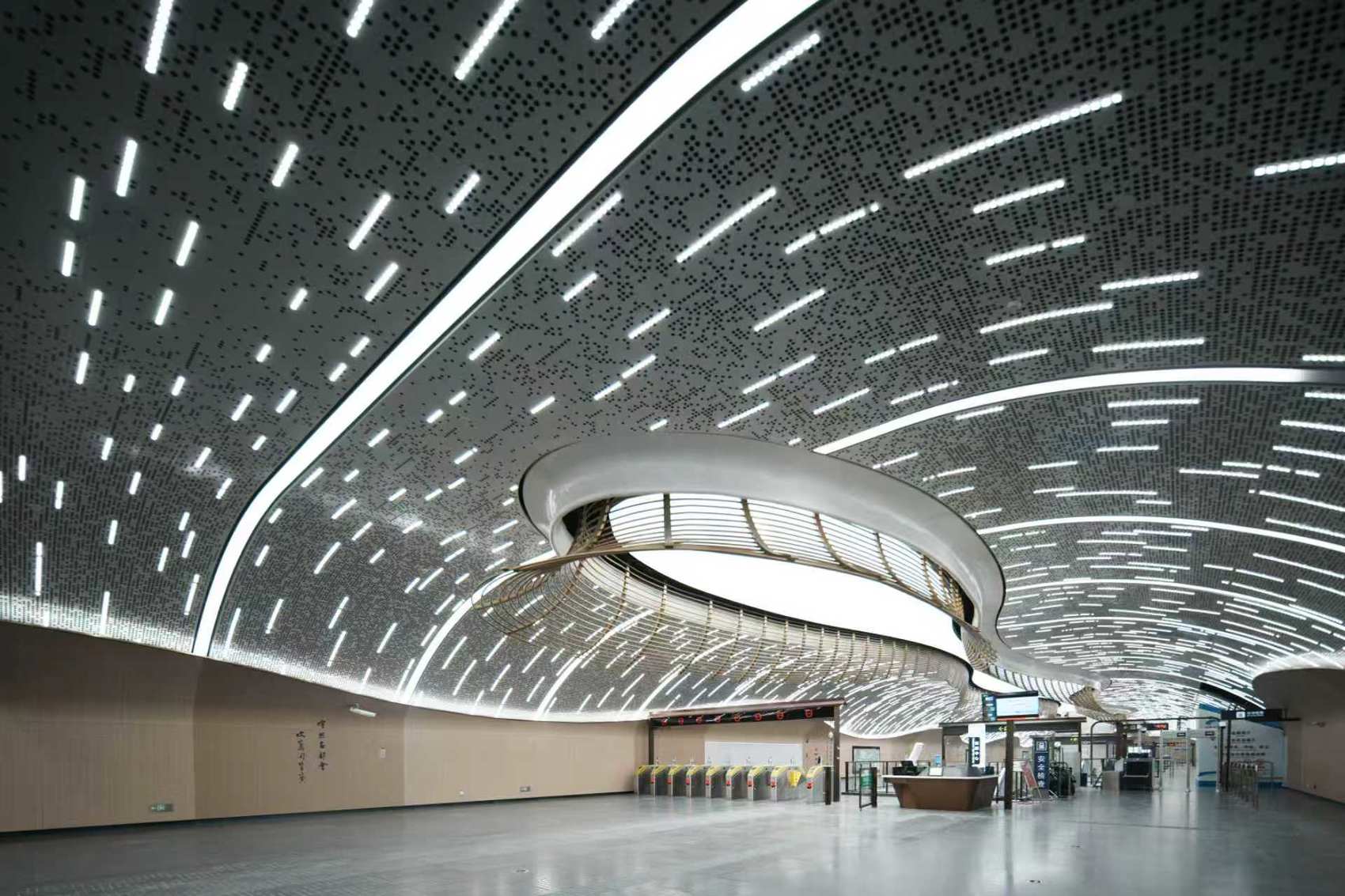 其余重点艺术站也独具风韵。光华村站以“诗韵自然·墨诉光华”为主题,融入杜甫《绝句》中的柳叶、西岭等元素,将浣花溪水的形态贯穿车站空间,营造出诗意缥缈的站厅氛围。幸福梅林站则用点点梅花灯饰与粉白光影,营造出“游梦梅庭”的浪漫意境……全线车站出入口也融合川西传统民居屋脊与中国古典美学,让市民乘客从进入车站伊始,便开启一场“诗中有画,画中有诗”的沉浸体验。