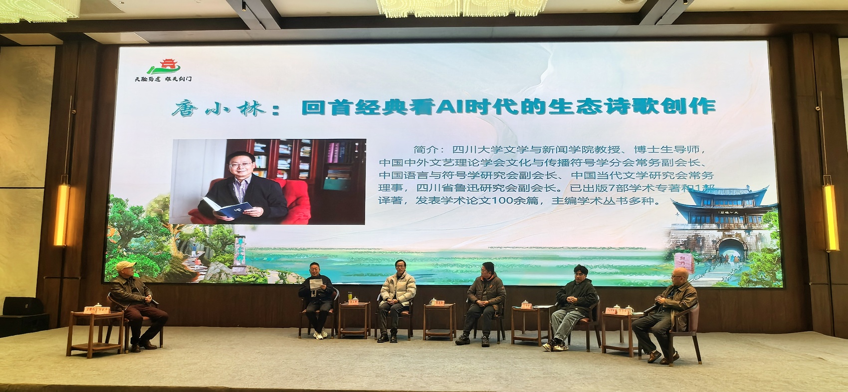 颁奖仪式后,大会围绕“AI时代的生态诗歌创作”这一前沿主题举行了诗歌研讨会,由四川省作家协会副秘书长杨献平主持,唐小林、张远伦、马培松等知名诗人、学者展开了热烈讨论。随后,重庆市作家协会副主席张远伦为与会者带来了一场精彩的诗歌讲座。