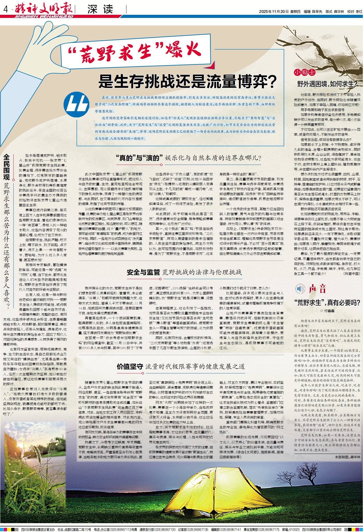 宣传部门需强化科普引导,明确荒野求生的专业性,避免异化为盲目跟风的“网红挑战”。