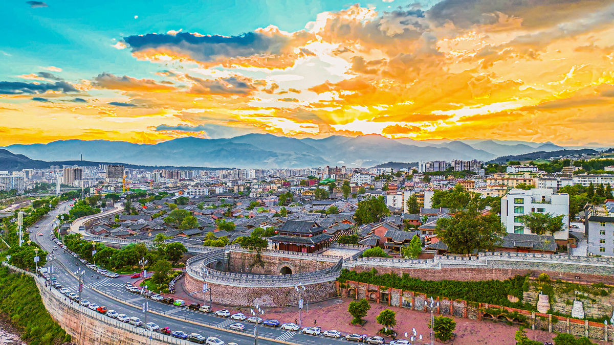西昌建昌古城安定门夕阳晚霞。江志华 摄