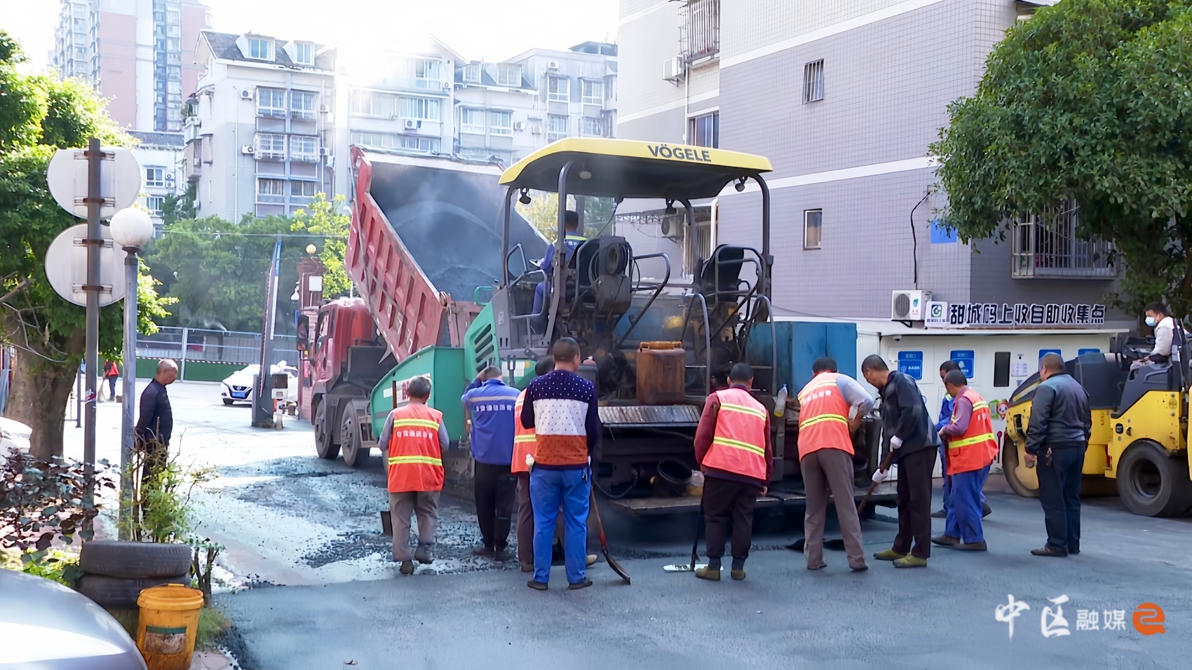 11月19日,位于市中区龙腾街39号的幸福小区内,备受居民关注的地面黑化工程正如火如荼地推进。主干道上,大型沥青摊铺机缓缓前行,滚烫的黑色沥青被均匀铺开,散发出阵阵热气。紧随其后的压路机来回穿梭,将原本坑洼的水泥路面碾压得平整光滑、焕然一新。