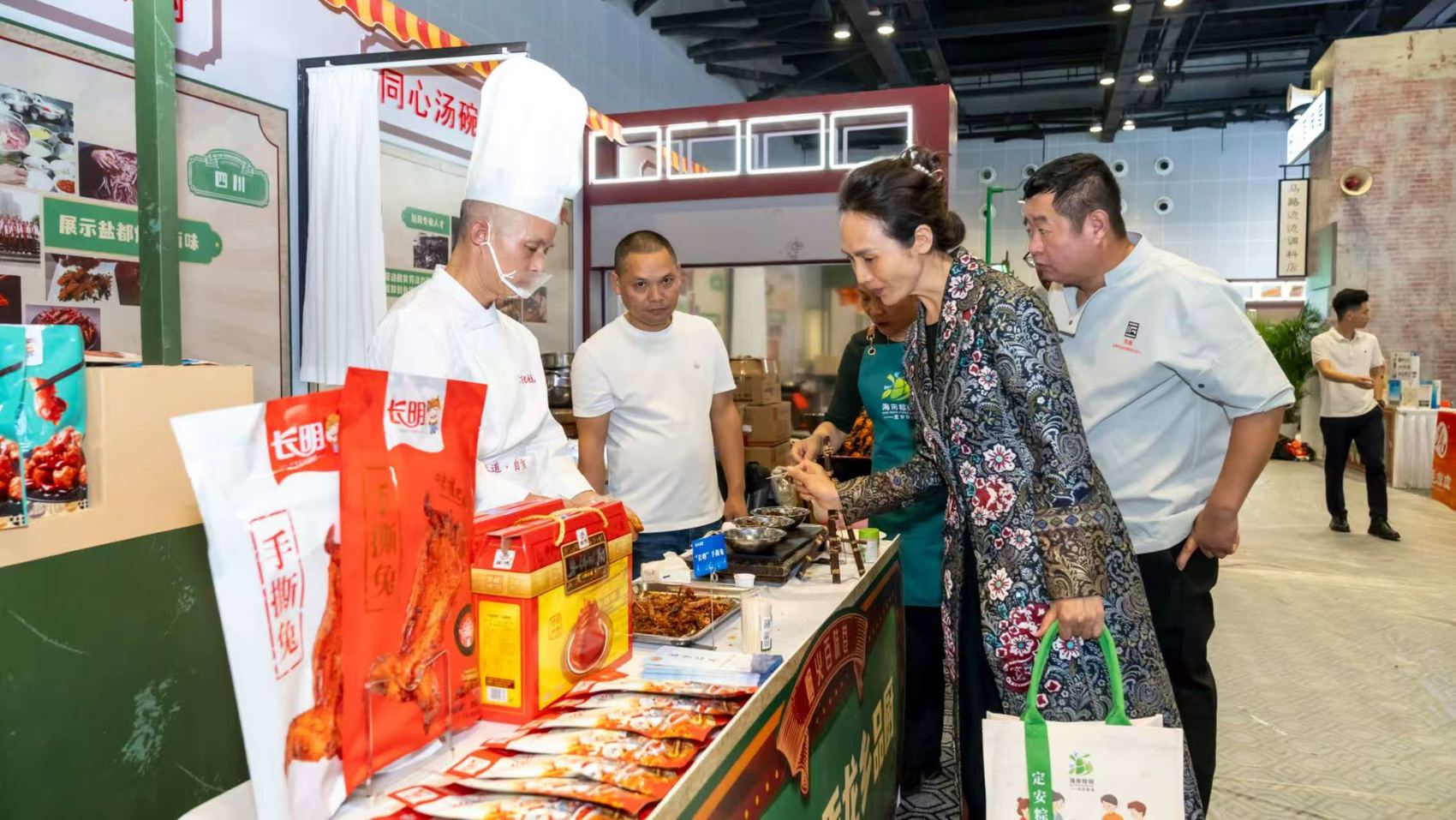 “这个冷吃兔的味道太地道了!”“这个冷吃牛肉超好吃!” 第三届全国劳务协作暨劳务品牌发展大会人社部美食展区内,自贡“龙乡品厨”展台前人头攒动,参展人员围着刚出锅的盐帮菜佳肴频频称赞。四川省自贡市“龙乡品厨”劳务品牌代表张平手持炒勺,现场制作了多道经典盐帮菜,获得品尝者的点赞。