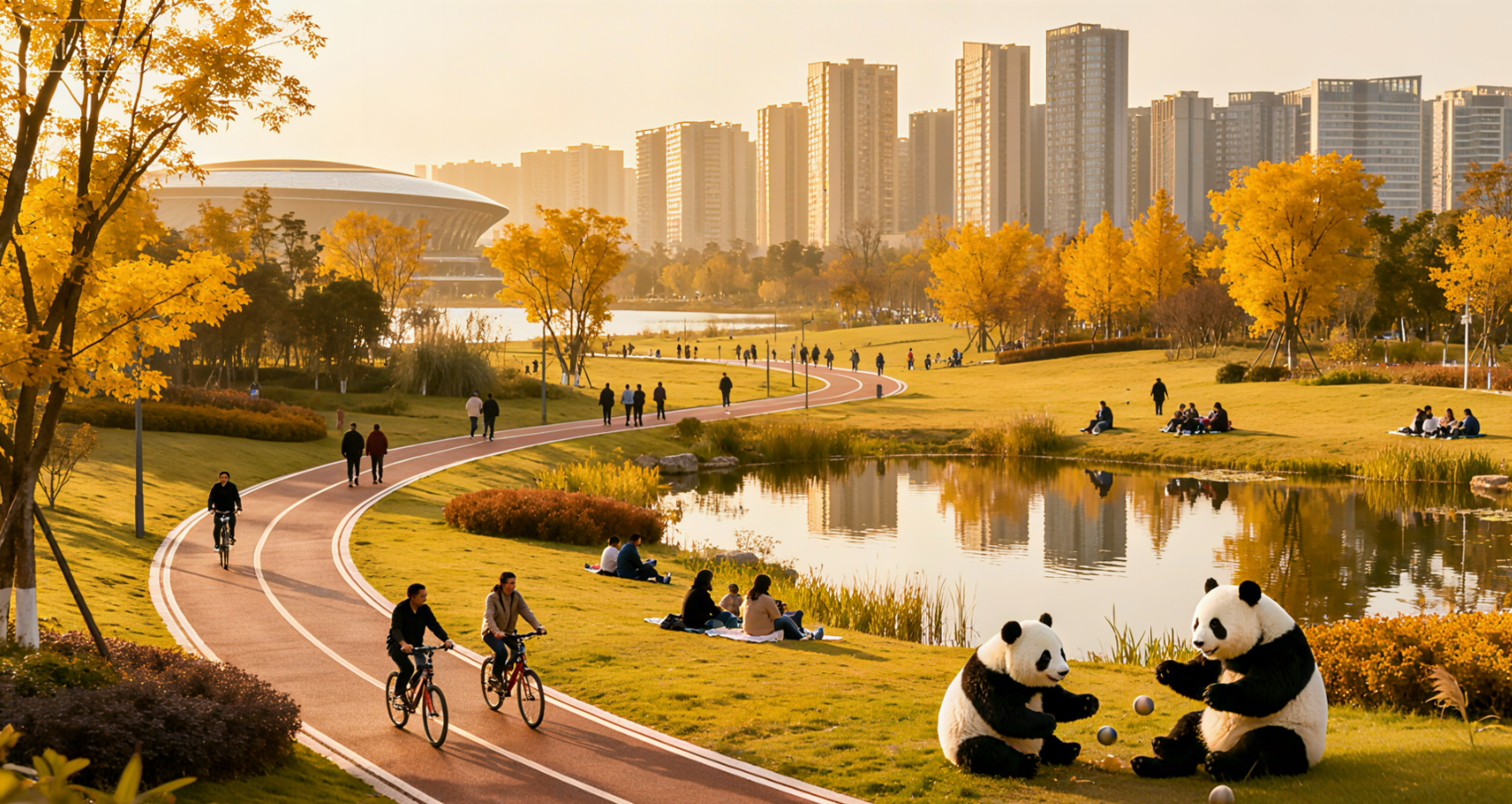 《东安湖秋晓:川蜀金风里的熊猫与枫浪》