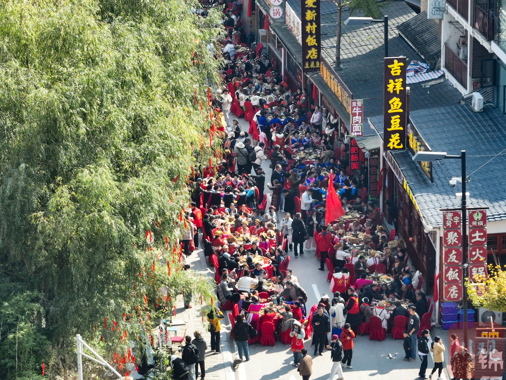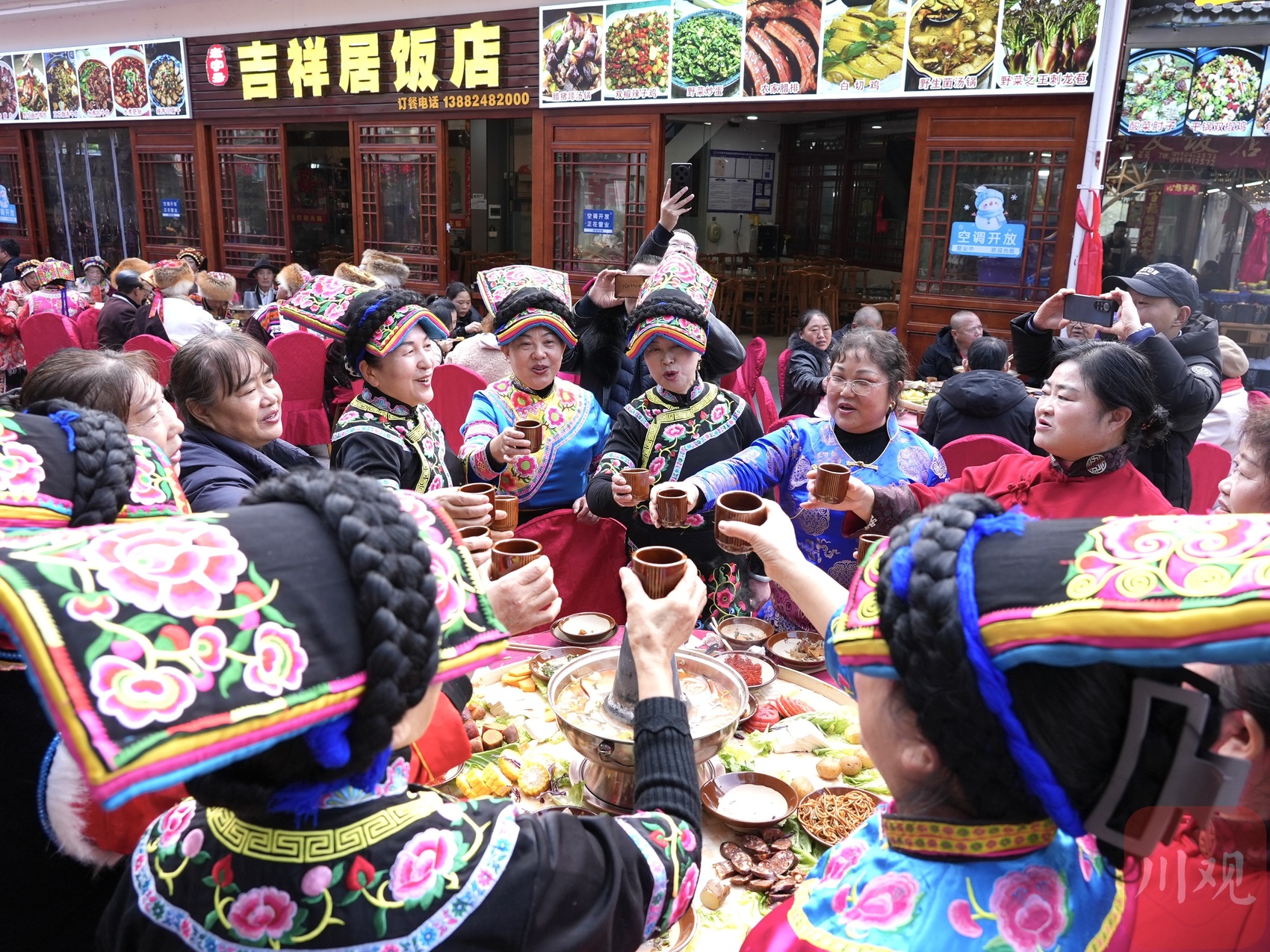 11月20日农历十月初一,是羌历新年。四川省阿坝藏族羌族自治州汶川县在映秀镇举办“羌年坝坝宴·天天吃刨汤”活动,现场摆开特色宴席,羌族咂酒、腊肉、荞面等美食飘香。人们围坐一堂,共享热腾腾的刨汤,一边欣赏羌族民俗表演,一边闲话家常,畅谈对新年的期盼,欢声笑语不绝于耳。