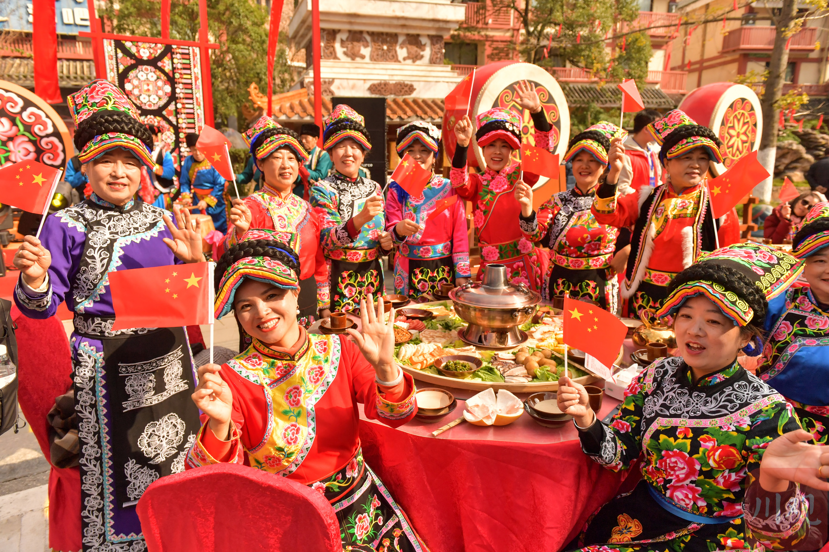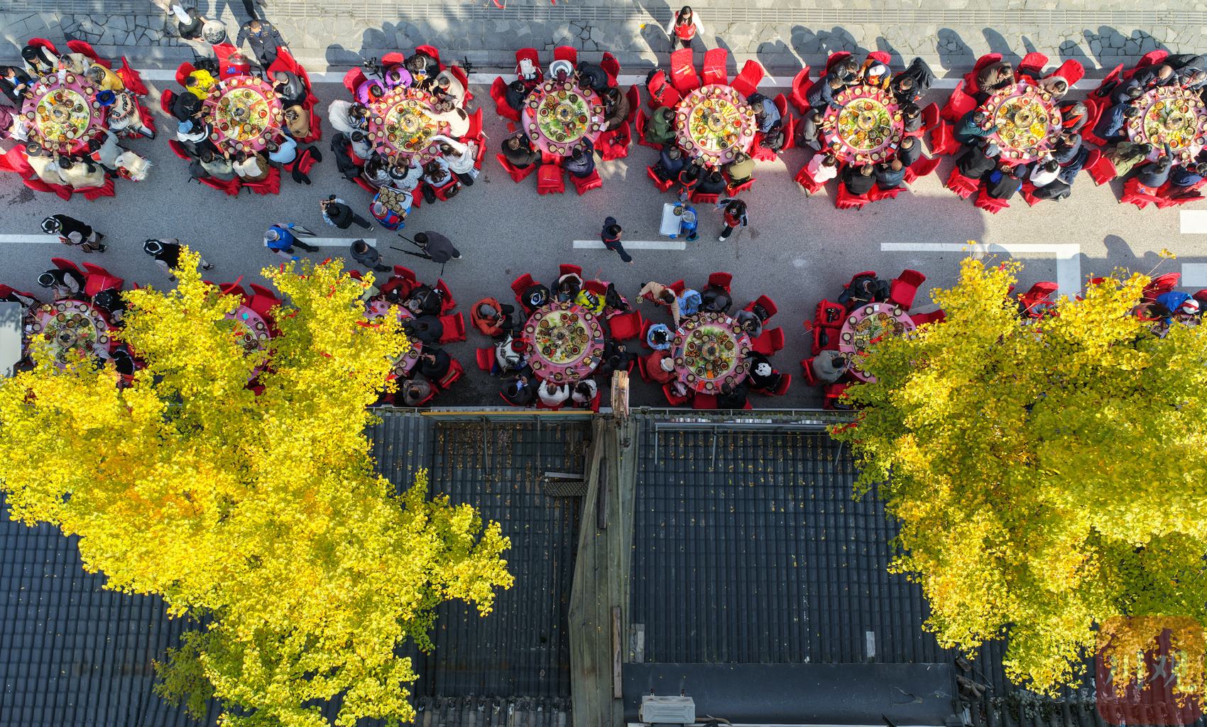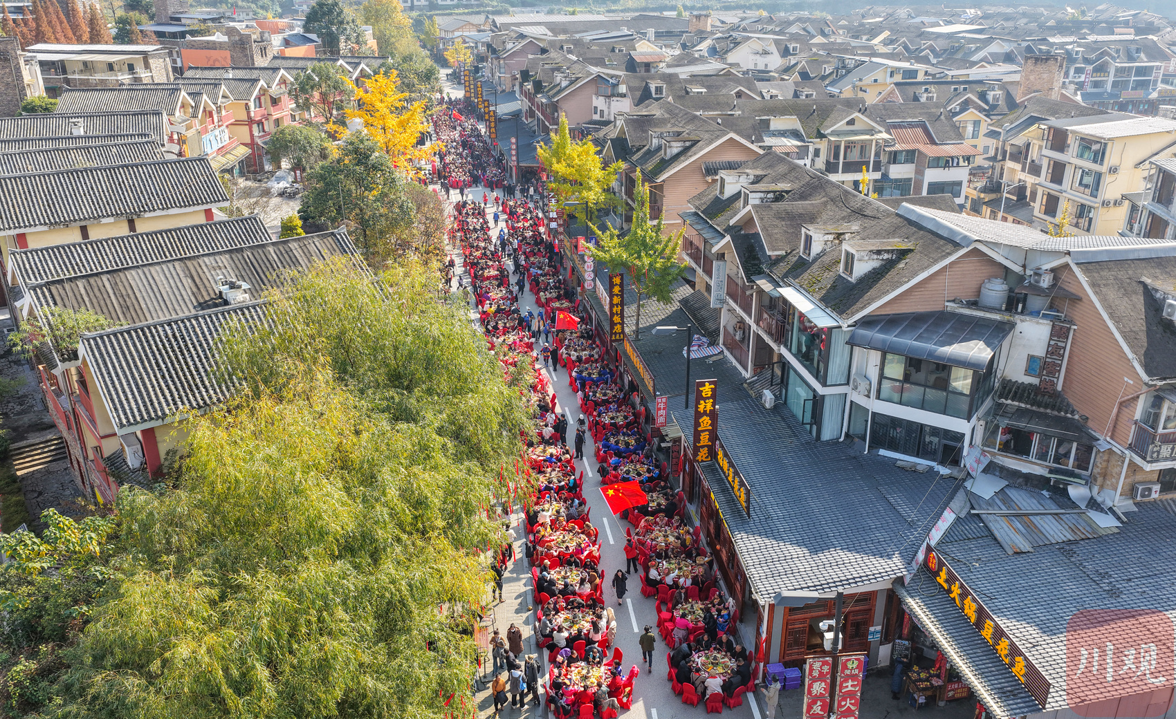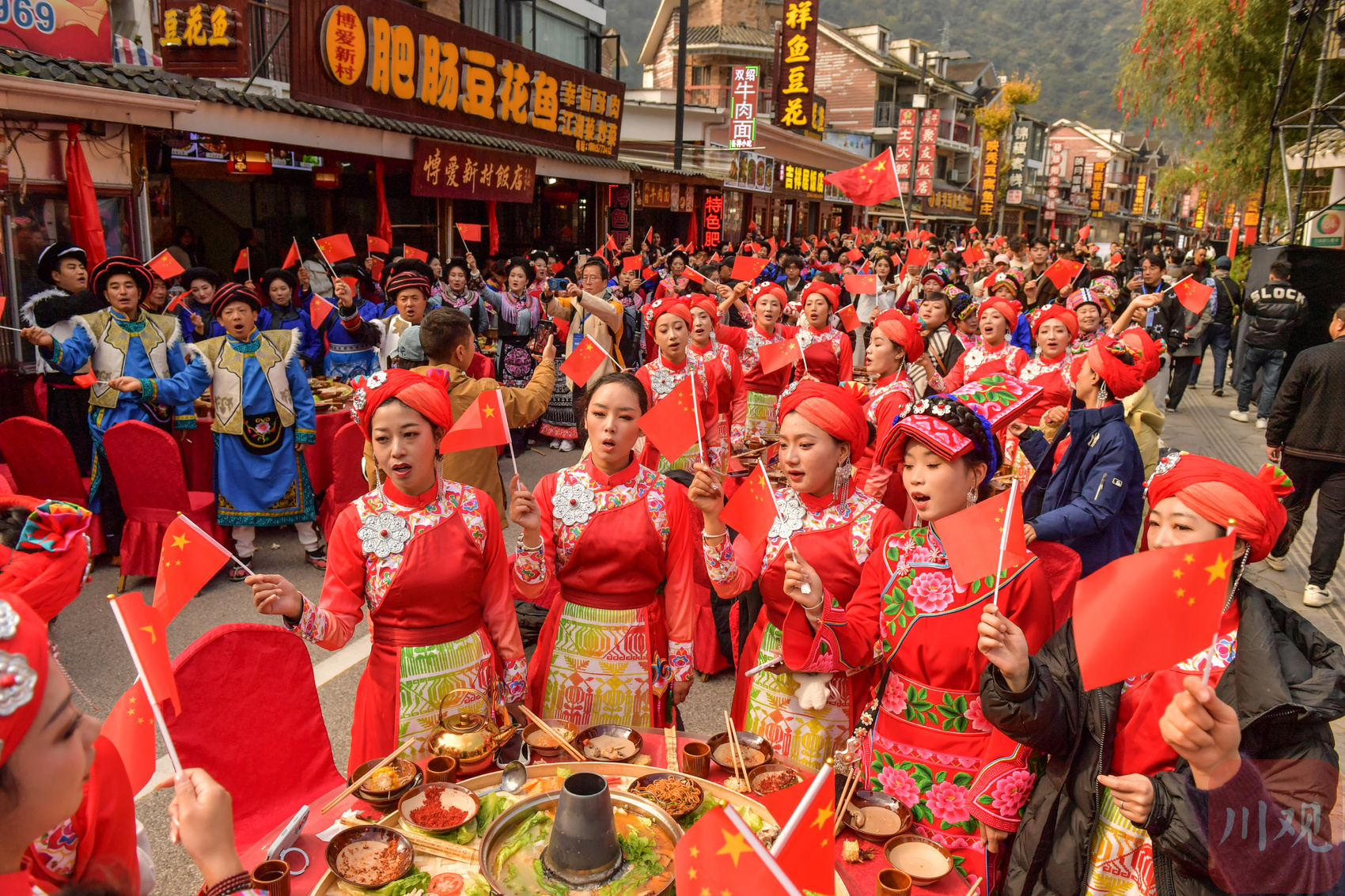 2025年11月20日,在四川省阿坝州汶川县映秀镇,当地群众吃坝坝宴庆祝羌年。