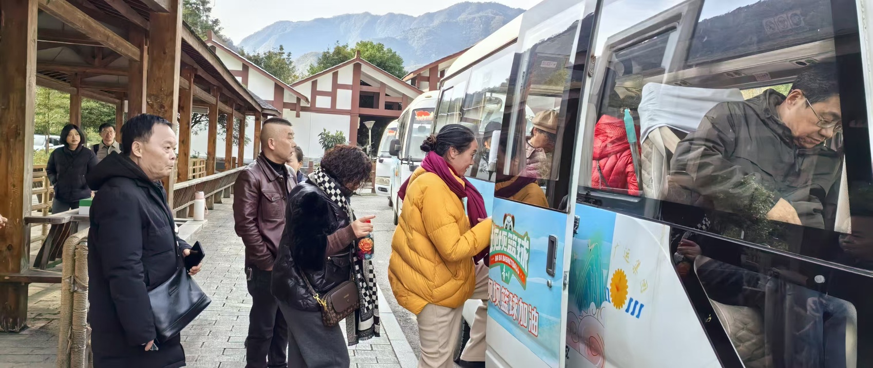 不仅如此,假日期间,唐家河在游客中心、核心观景平台等关键点位设立“暖心服务站”,为往来游客免费供应热姜汤、提供防寒应急物品。此外,景区还对所有观光车辆进行防寒升级,加装防风防寒挡板,让乘车体验更舒适。