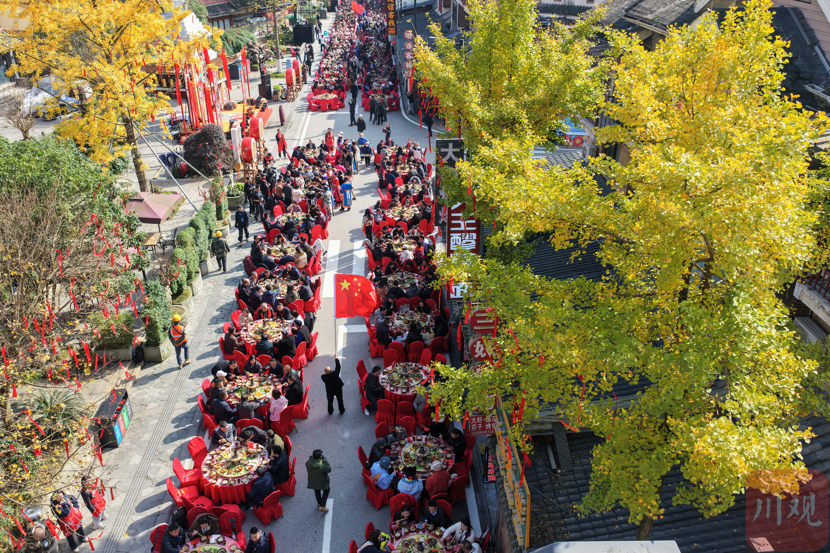 11月20日,在四川省阿坝州汶川县映秀镇,当地群众吃坝坝宴庆祝羌年。