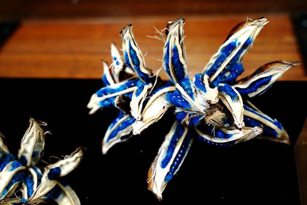 11月19日在辰山中心植物种子展柜中拍摄的旅人蕉蓝色种子。