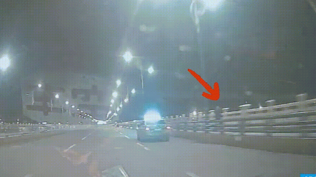 ▲司机刘涛发现路边停着一辆出租车,桥栏杆旁边有人在互相拉扯。