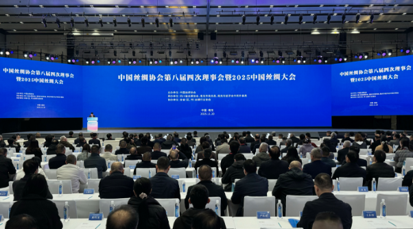 11月20日,中国丝绸协会第八届四次理事会暨2025中国丝绸大会在四川南充开幕。来自全国各地的行业精英齐聚“中国绸都”,共同回顾“十四五”茧丝绸行业峥嵘历程,谋划中国丝绸“十五五”发展新篇,从国家宏图、区域战略到城市实践,共同绘制中国丝绸产业高质量发展的锦绣画卷。
