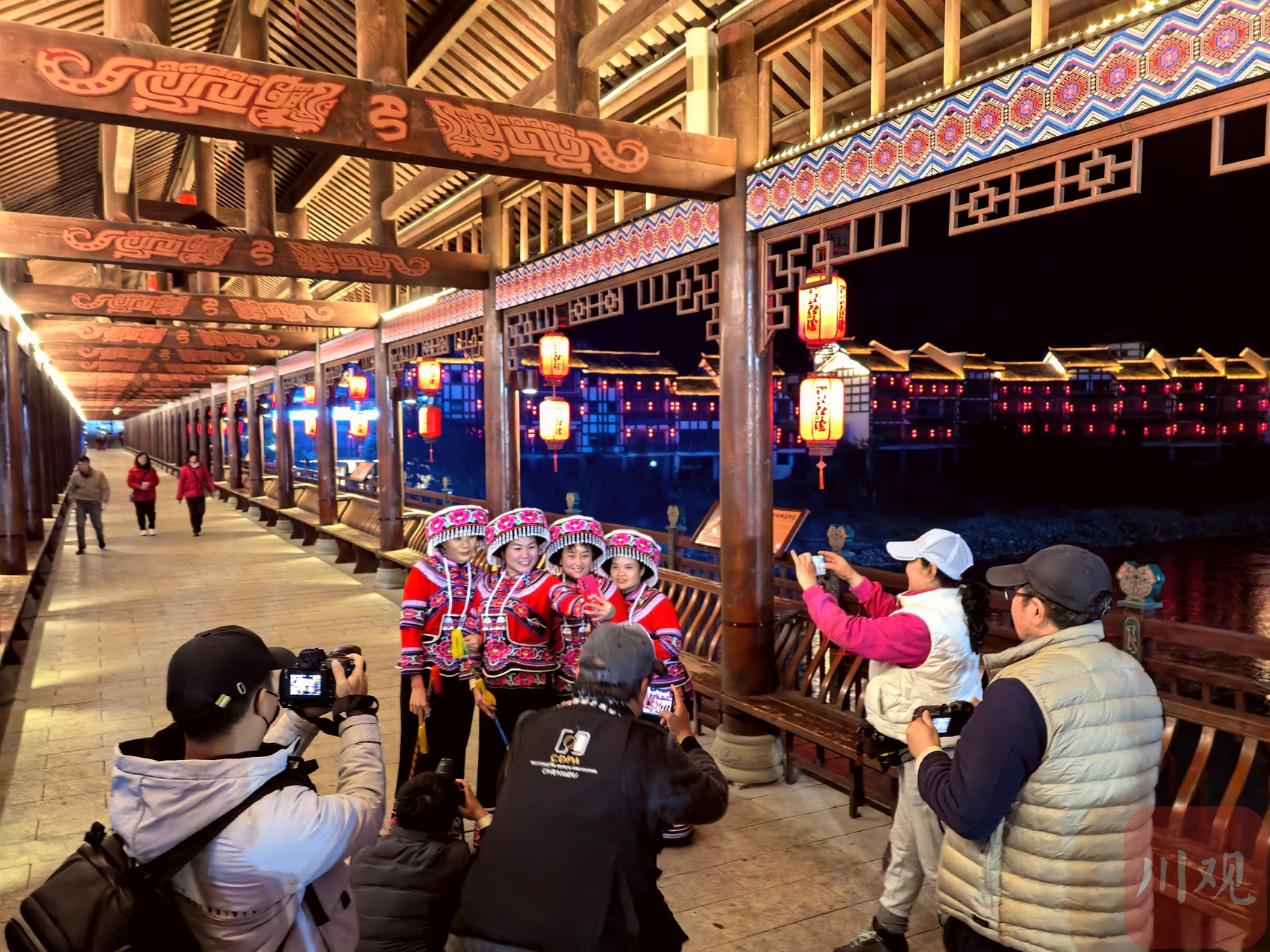 采风团拍摄土家非遗婚俗秀的演员们。