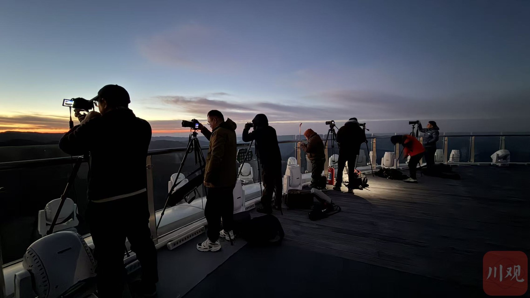 采风团在月亮坪拍摄日出美景。