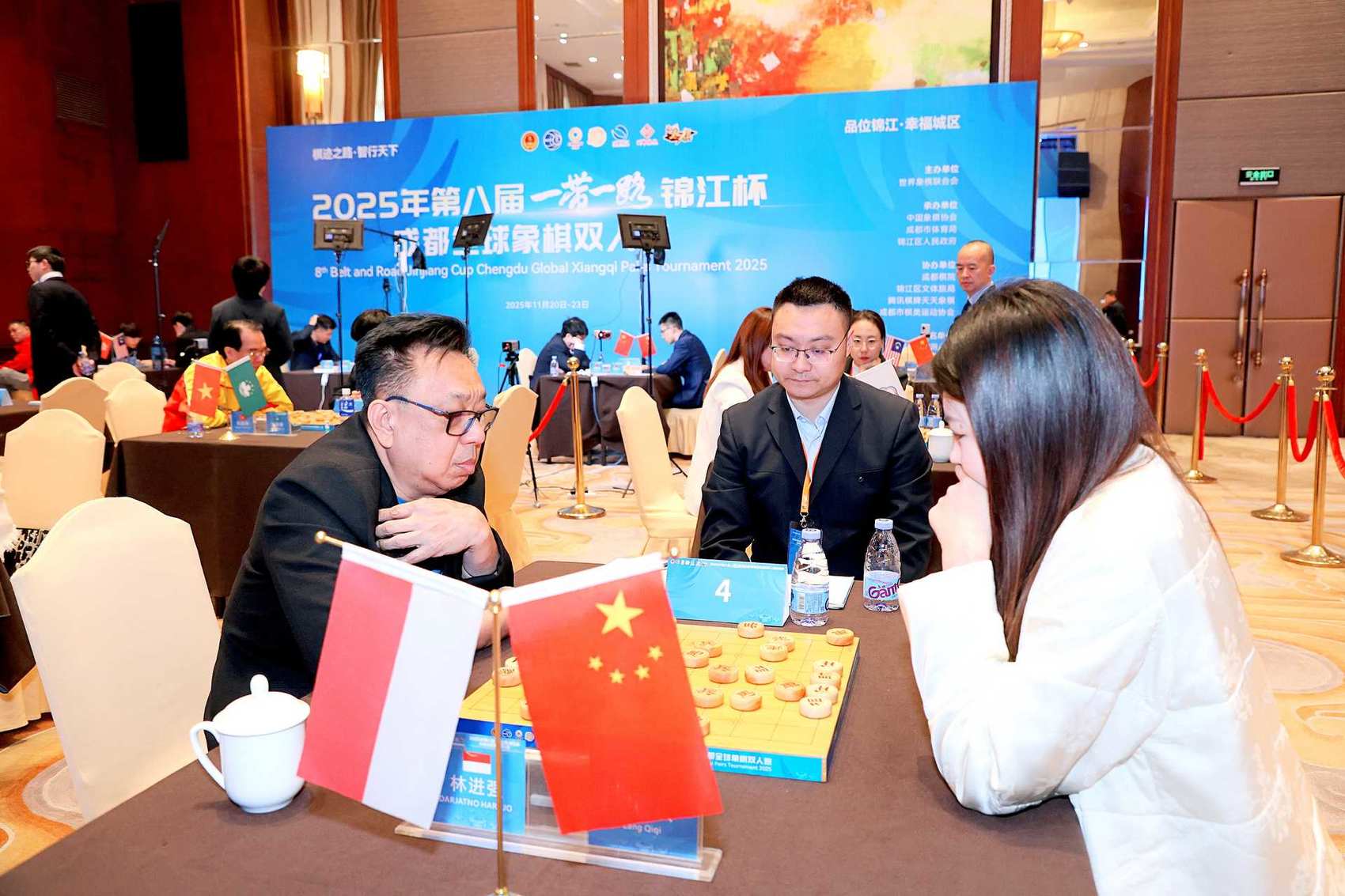 11月21日,2025年第八届"一带一路"锦江杯成都全球象棋双人赛在成都启幕,来自18个国家和地区的32名棋手参赛。