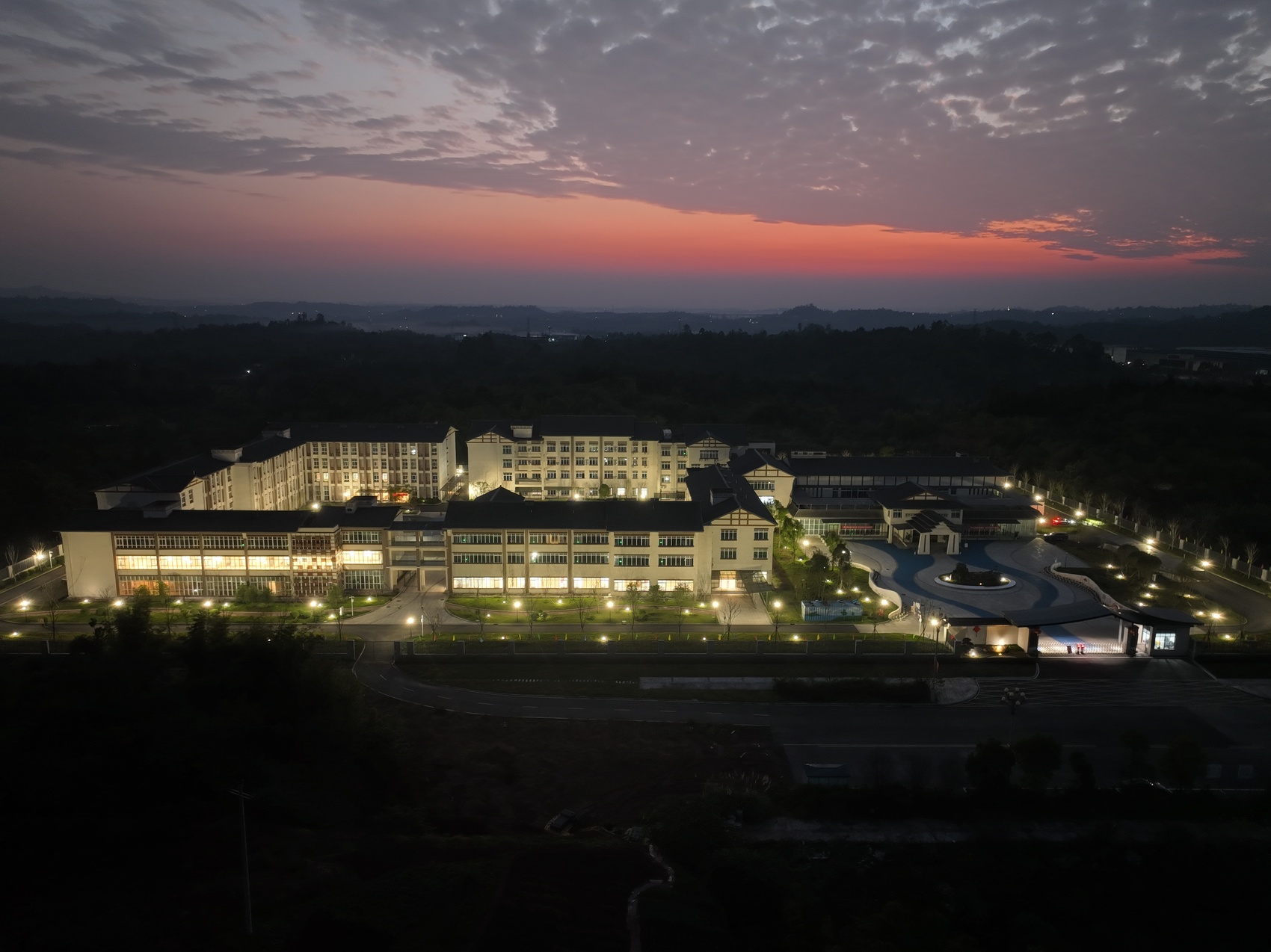 航拍傍晚时分的广安市养老服务中心。(胡力文 摄)