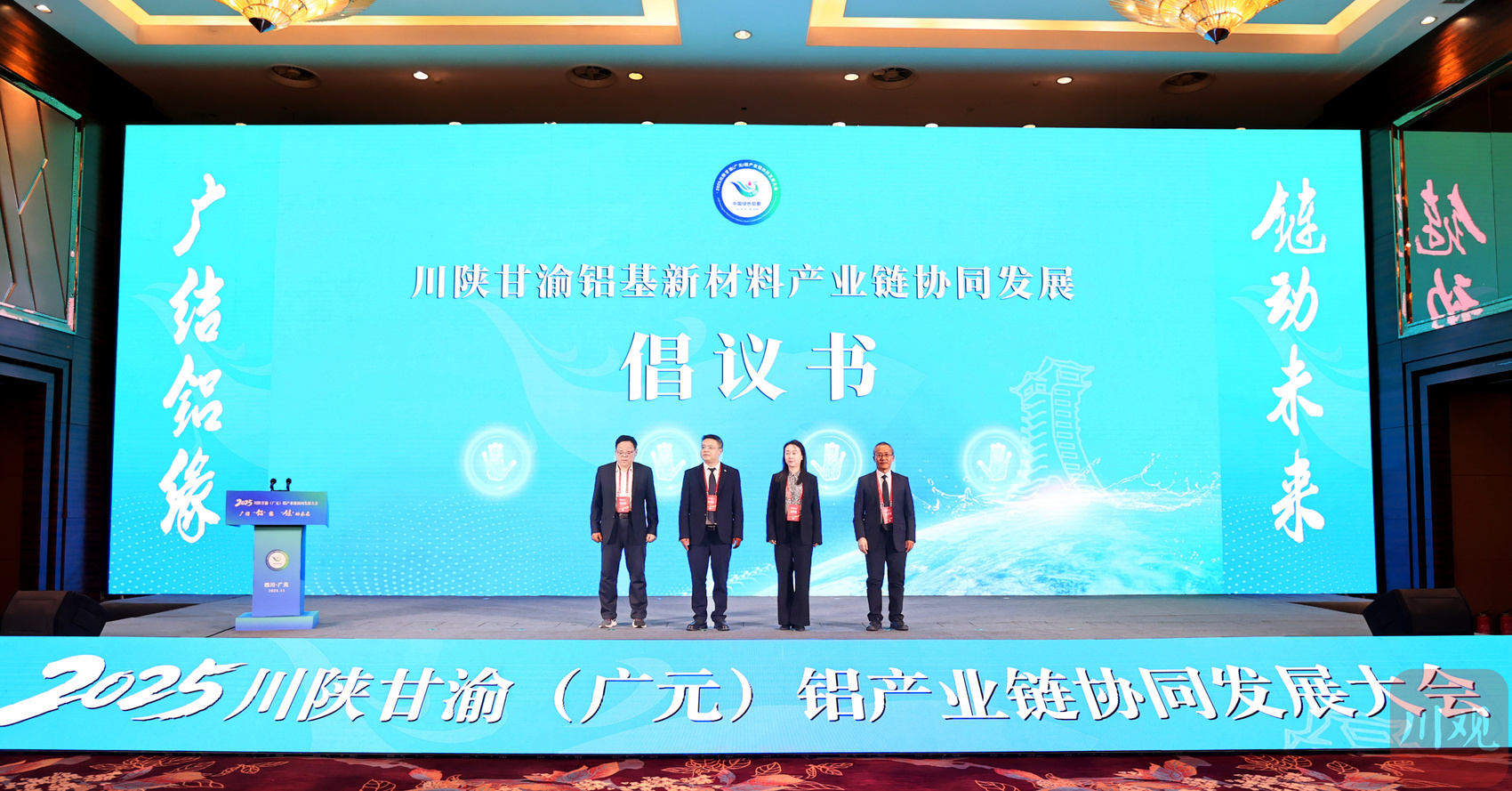 会上,四川省有色金属工业协会、陕西省有色金属工业协会、甘肃省金属学会、重庆有色金属学会共同发起倡议,并正式发布了《川陕甘渝铝基新材料产业链协同发展倡议书》。