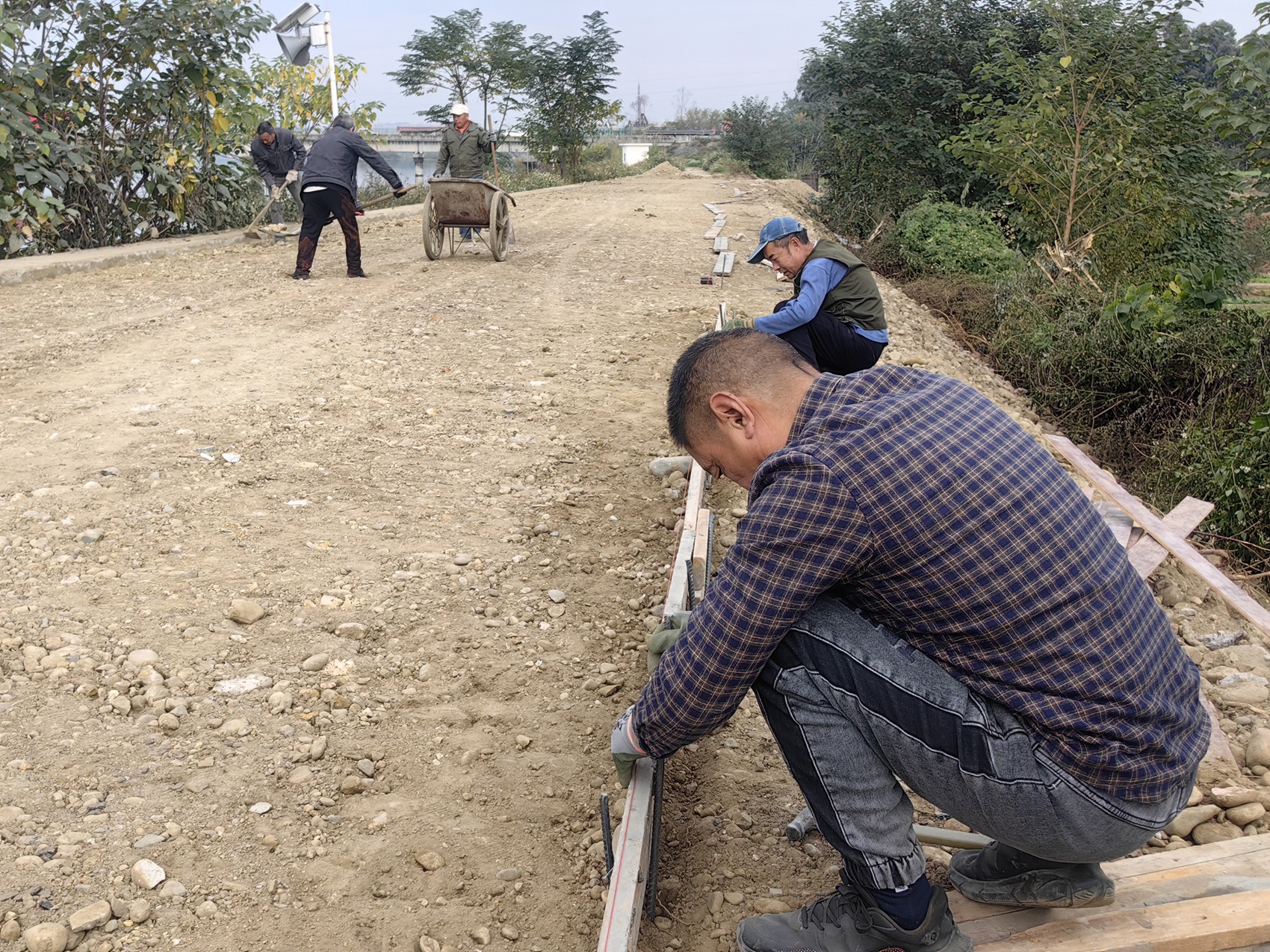 这条300多米长的村道,连接着永和村三组和四组,一直延伸到鸭子河畔,是村民们前往广汉城区最便捷的通道。多年来,路面坑洼不平,每逢雨天,车辆驶过便泥水飞溅,给出行带来不少困扰。“盼了这么多年,终于要修路了。”村民李大爷提高嗓门,脸上洋溢着喜悦,“我的心情啊,就跟今天这天气一样,晴朗得很!”